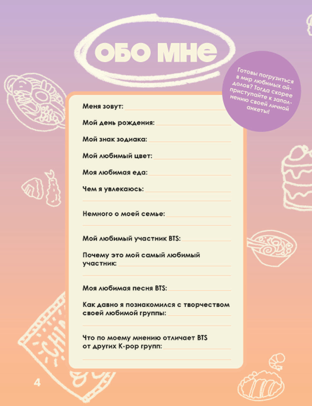 Les principaux récepteurs du livre culinaire BTS sont les mêmes groupes légendaires de pop-pop ! Alors, qu'est-ce qu'il a fait, ils ont partagé et ont choisi des partenaires de BTS, — dans ce livre ! Подробные рецепты, основы корейской кулинарии и яркие страницы — самый крутой подарок для настоящих ARMÉE !