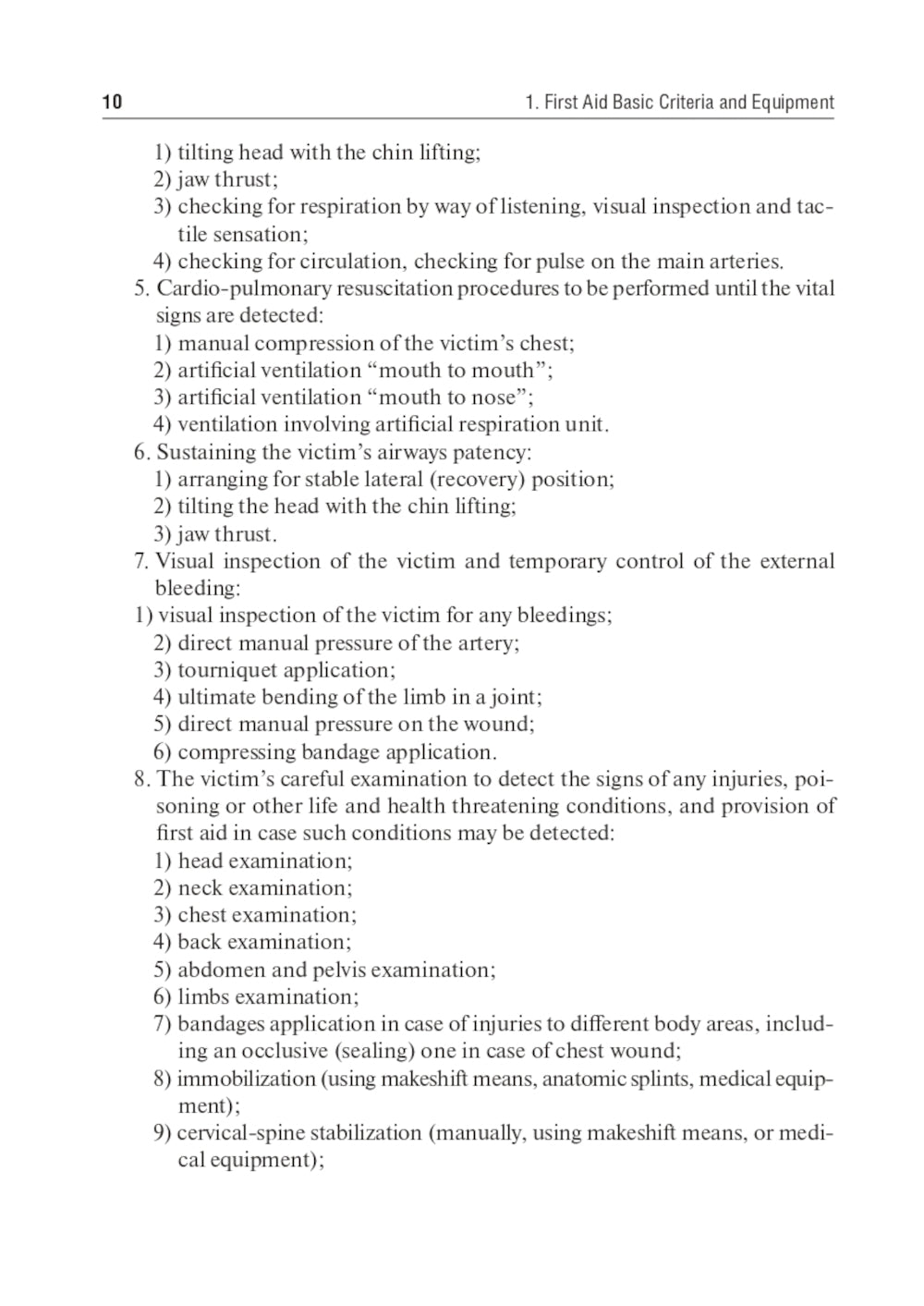 Ce guide pédagogique présente les principes fondamentaux des premiers secours en cas d'urgence et d'accident, conformément aux algorithmes et recommandations actuels de la commission spécialisée du ministère de la Santé de la Fédération de Russie, ainsi qu'aux directives des sociétés et conseils médicaux spécialisés russes et européens. Il met en avant les neuf principaux thèmes de la matière « Premiers secours en cas d'accident et de catastrophe » et du module « Premiers secours » de la matière « Sécurité des personnes en médecine ». Il a été élaboré conformément aux dernières modifications de la norme éducative de l'État fédéral. Il reflète tous les algorithmes modernes et mis à jour pour les premiers secours et la réanimation cardio-pulmonaire de base, et contient des questions clés pour chaque partie, ainsi que des tests préliminaires pour l'auto-évaluation des étudiants. Ce manuel peut être utile aux étudiants suivant des formations en ligne (y compris à distance). Le guide pédagogique est conçu pour les étudiants en médecine tertiaire enseignés en anglais ainsi que pour les étudiants étrangers participant aux cours dans le cadre de groupes russophones. En outre, il peut être utilisé comme lecture complémentaire par les étudiants universitaires, les étudiants des écoles secondaires de médecine et les étudiants en médecine qui apprennent l'anglais.