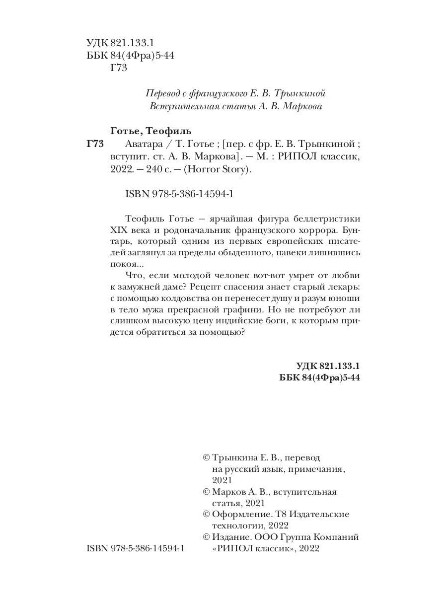 Теофиль Готье — ярчайшая фигура беллетристики XIX века и родоначальник французского хоррора. Buntarь, который одним из первых европейских писателей заглянул за пределы обыденного, навеки лишившись покоя... Qu'est-ce que Mолодой человек вот-вот умрет от любви к замужней даме? Récupérez l'espace disponible pour le lecteur principal : il vous permettra de profiter de votre vie et de votre situation dans le domaine de la musique prévue à cet effet. Vous n'avez pas l'intention de trouver un film indien pour que vous puissiez l'obtenir ?