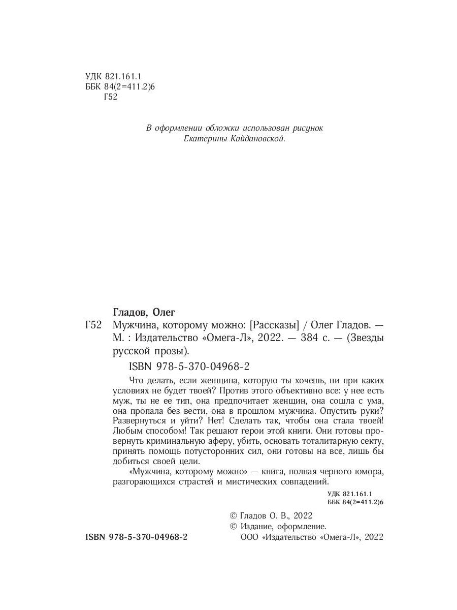 Qu'est-ce que vous devez faire pour que votre femme soit à votre écoute, mais que vos affaires ne vous intéressent pas ? Cette question est objectivement tout à fait la suivante : vous n'êtes pas une femme, vous n'avez pas de type, en prévision d'une femme, en ce qui vous concerne, en vous proposant sans vêtements, en в прошлом мужчина. Опустить руки? Развернуться и уйти? Non! Сделать так, чтобы она стала твоей! Любым способом! C'est ce que les héros ont fait. Ils ont prouvé l'arène criminelle, ils ont déclaré qu'ils étaient tous des gens de la secte, ils ont dit qu'ils étaient des gens de notre monde. лишь бы добиться своей цели. «Мужчина, которому можно» — книга полная черного юмора, разгорающихся страстей, и мистических совпадений.