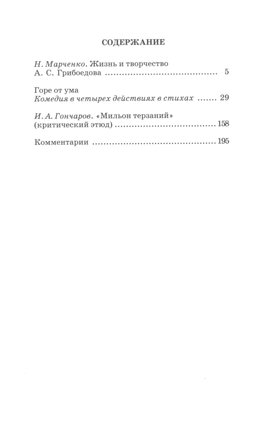 Бессмертная комедия великого русского поэта со статьей И. A. Гончарова «Мильон терзаний». Pour le premier lycée de l'école.