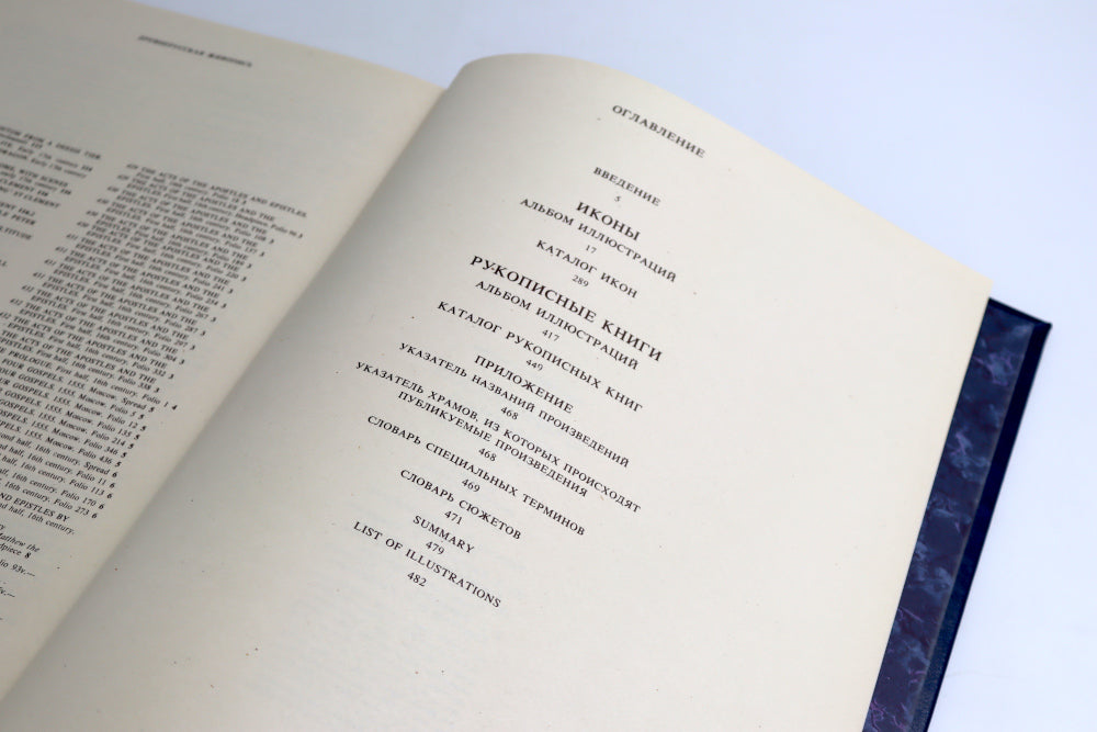 L'album a été publié dans le cadre du livre XIII de Gosudarstvennogo, l'icone et le livre du livre XIII - pour la XVIIème année. Представлены книжные миниатюры, орнаментика, а также иконы различных иконописных школ (Новгородская школа, Псковская школа, Московская школа, Поволжье, Сольвычегодская мастерская Строгановых, Северные письма). К каждой иконе и рукописной книге прилагаются следующие сведение: описание, материал, техника, размеры, происхождение, раскрытие, сохранность, иконография, атрибуция, датировка.