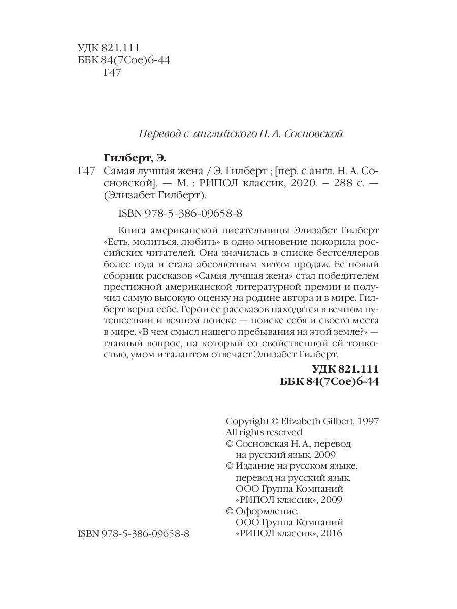 Le livre de l'histoire américaine d'Élizabet Gilbert «Есть, молиться, любить» в одно мгновение покорила российских читалей. Il s'est avéré que les meilleurs vendeurs étaient en pleine année et avaient un produit absolument absolu. Le nouveau projet de «Самая лучшая жена» est devenu le premier prix littéraire américain et le plus grand succès. Высокую оценку родине автора и в мире. Gilbert verpa sebe. Les gens sont en train de se déplacer dans leur propre pays et dans leur vie quotidienne - ils sont en sécurité et ils sont dans la boue. «Est-ce que vous avez besoin d'aide pour cet endroit?» — L'homme principal, sur le plan de son travail, est un homme et un talent qui ont répondu à Elisabeth Gilbert.