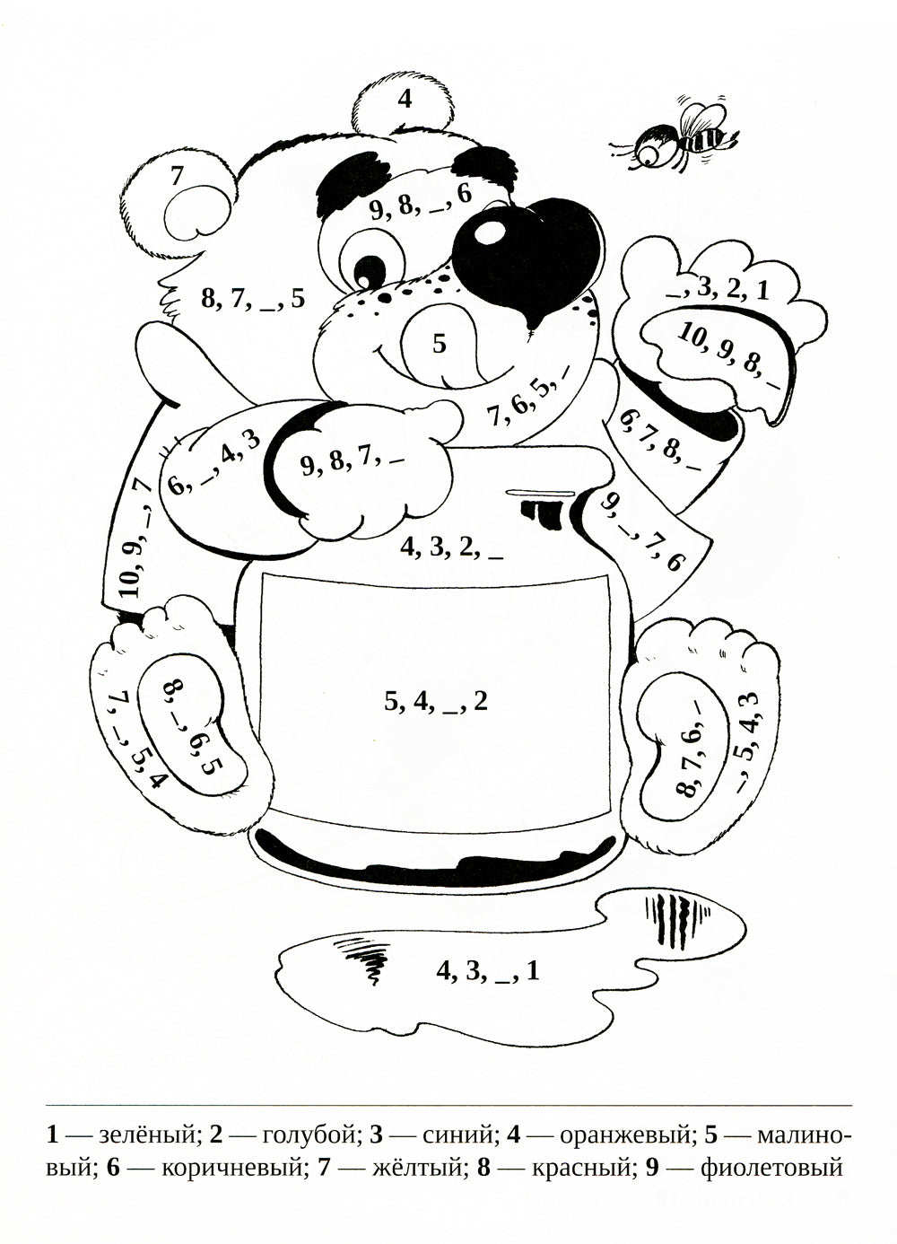 Данная раскраска поможет вашему ребенку овладеть навыками сложения и вычитания в пределах 10. Задания математической раскраски не только помогут обучить малыша счету и выполнению арифметических действий в игровой форме, но и будут способствовать развитию мелкой моторики, памяти, внимания, воображения и мышления ребенка. Раскраска предназначена для воспитателей ДОУ и родителей детей дошкольного возраста.