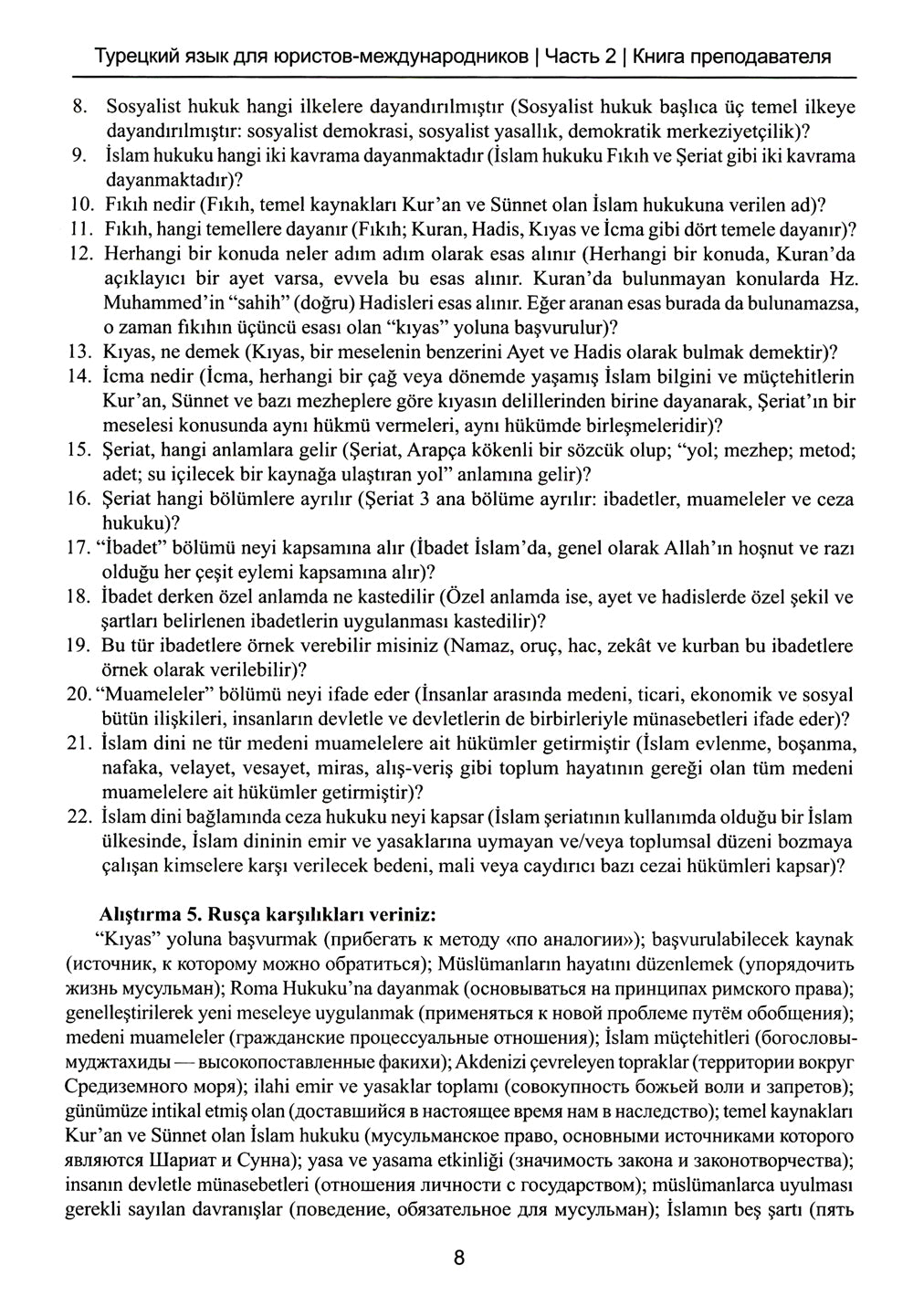 Книга преподавателя к учебнику "Турецкий язык для юристов-международников": Учебно-методическое пособие. В 2 ч. Ч. 2