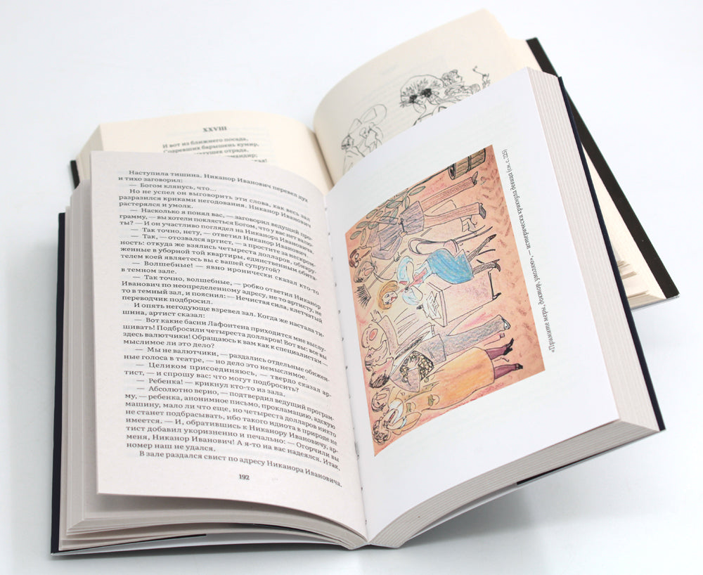 Комплект состоит из двух книг: «Мастер и Маргарита» М.А. Булгакова и «Евгений Онегин» А.С. Пушкина. Великий роман Михаила Афанасьевича Булгакова «Мастер и Маргарита» с замечательными иллюстрациями Надежды Рушевой. Выдающаяся художница Надежда Николаевна Рушева (1952–1969) прожила очень короткую жизнь, однако вошла в историю отечественной и мировой иллюстрации как великолепный график, мастер рисунка, обладавший «поразительным даром проникновения в область человеческого духа». Как справедливо заметил Ираклий Андроников: «То, что это создала девочка гениальная, становится ясным с первого рисунка. Они не требуют доказательств своей первозданности». Роман в стихах Александра Сергеевича Пушкина «Евгений Онегин», над которым поэт работал более восьми лет. Произведение занимает центральное место в его творчестве и является одной из вершин русской поэзии. Книга проиллюстрирована замечательными рисунками Надежды Рушевой. Выдающаяся художница Надежда Николаевна Рушева (1952–1969) прожила очень короткую жизнь, однако вошла в историю отечественной и мировой иллюстрации как великолепный график, мастер рисунка, обладавший «поразительным даром проникновения в область человеческого духа». Как справедливо заметил Ираклий Андроников: «То, что это создала девочка гениальная, становится ясным с первого рисунка. Они не требуют доказательств своей первозданности». Для широкого круга читателей.