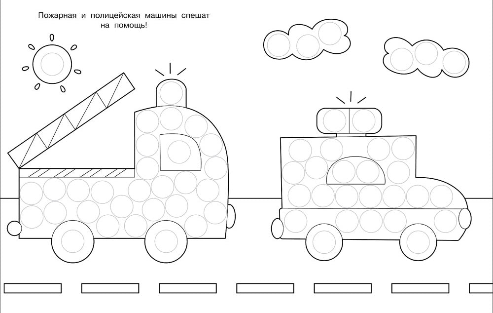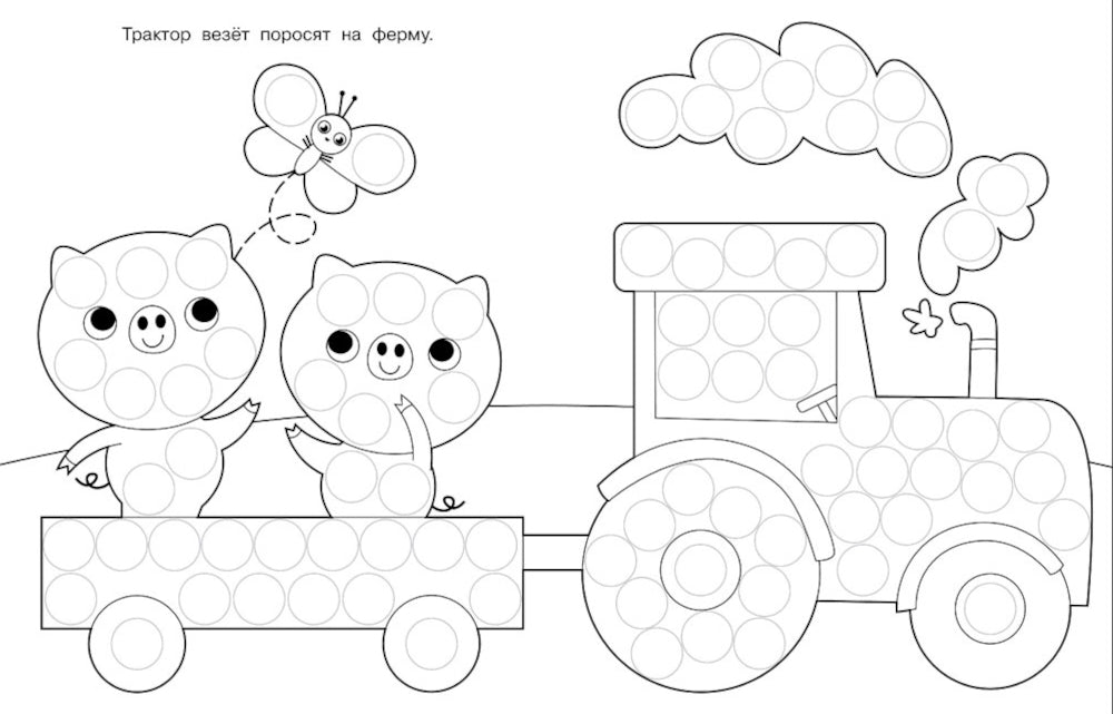 Эта раскраска подходит для любых точечных маркеров. Рисовать ими — сплошное удовольствие! Открывается необыкновенный простор для творческого мышления детей. Яркие отпечатки точечных маркеров делают картинки нарядными и оригинальными.