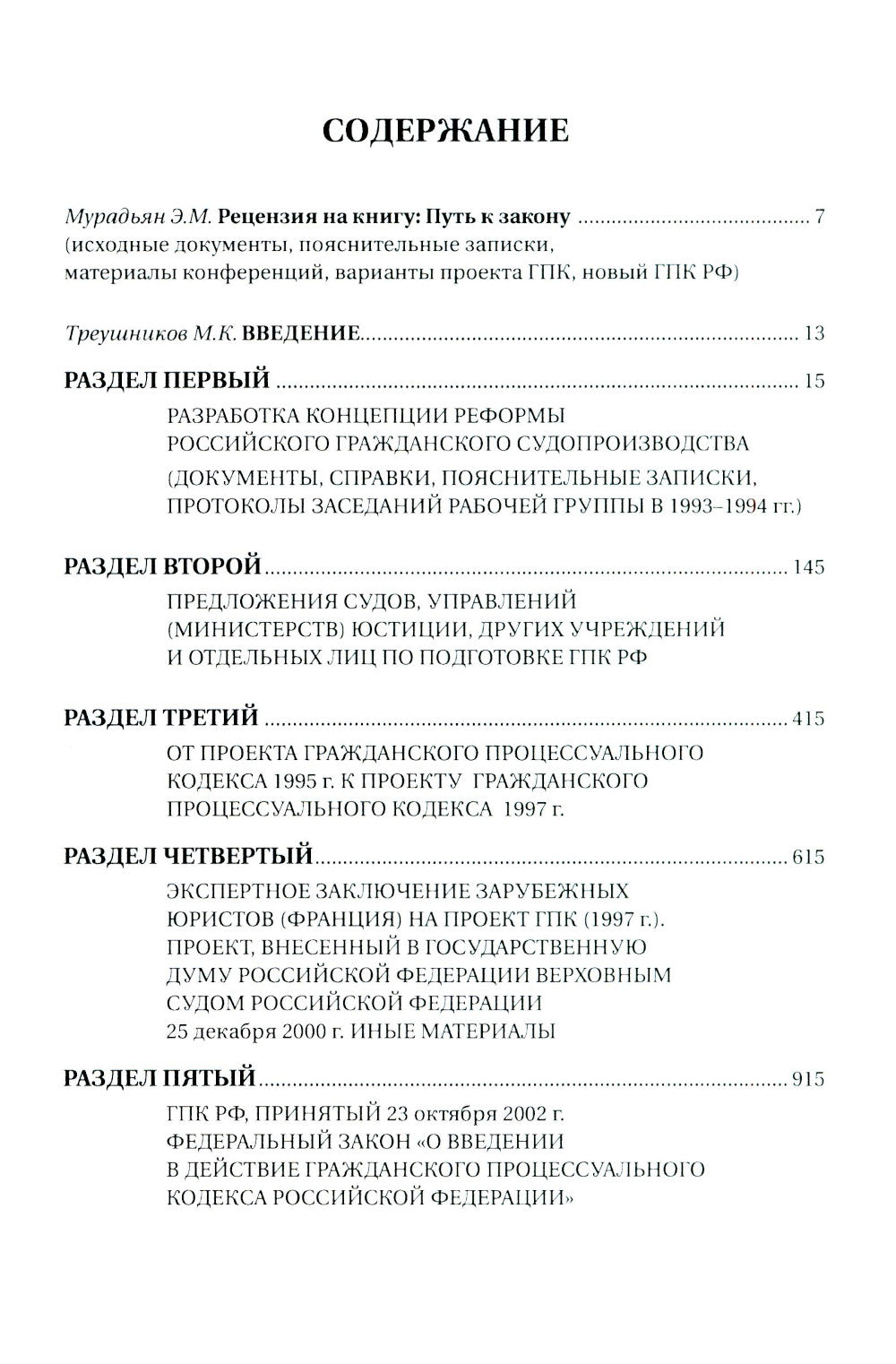 В книге публикуются документы из архива группы по разработке нового ГПК Российской Федерации, свидетельствующие о сложности работы над Гражданским процессуальным кодексом России, принятым 23 октября 2002 г. Читатель найдет в первичных ее материалах (объяснительных записках, протоколах заседания рабочей группы, вариантах проекта ГПК) многообразие мнений и предложений, касающихся концепции этого закона, доказательств, процессуального положения прокурора, видов судопроизводства, сроков рассмотрения дел, пересмотра судебных постановлений. По просьбе М. К. Треушникова, незадолго до его ухода, во второе издание включена рецензия на эту книгу. По словам автора рецензии, «Путь к закону» — своего рода исторический и юридический факт восстановления и продолжения научной и законотворческой традиции. Для научных сотрудников, преподавателей, студентов, аспирантов юридических вузов, историков юридической науки, теоретиков права, изучающих законодательный процесс и его технику, судей, прокуроров, адвокатов и иных практикующих юристов, граждан, интересующихся судебной реформой в России.