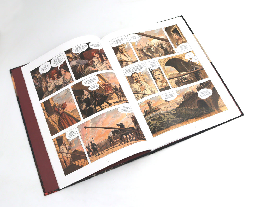 Микеланджело Меризи, известный как Караваджо (1571–1610), вошел в историю как один из величайших художников — тонко чувствующий, стремительный, склонный к риску и гедонизму. Кончик его кисти вырезал свет и тени, создавая незабываемые работы и необыкновенный реализм. Четыре столетия спустя другой итальянский мастер рисования, Мило Манара, отдает дань уважения гению своим графическим романом. Первая книга, «Палитра и шпага», расскажет читателям о радостях и тяготах ранних лет жизни Караваджо в Риме. Вторая книга, «Помилование», показывает художника как фигуру одновременно героическую и трагическую, в то же время не лишенную всего человеческого. Правдоподобность Караваджо не вызывает сомнений, как если бы Манара рассказывал о том, что видел собственными глазами, с безграничным уважением к коллеге, столь далекому по времени, но близкому по чувствительности и творческим намерениям.