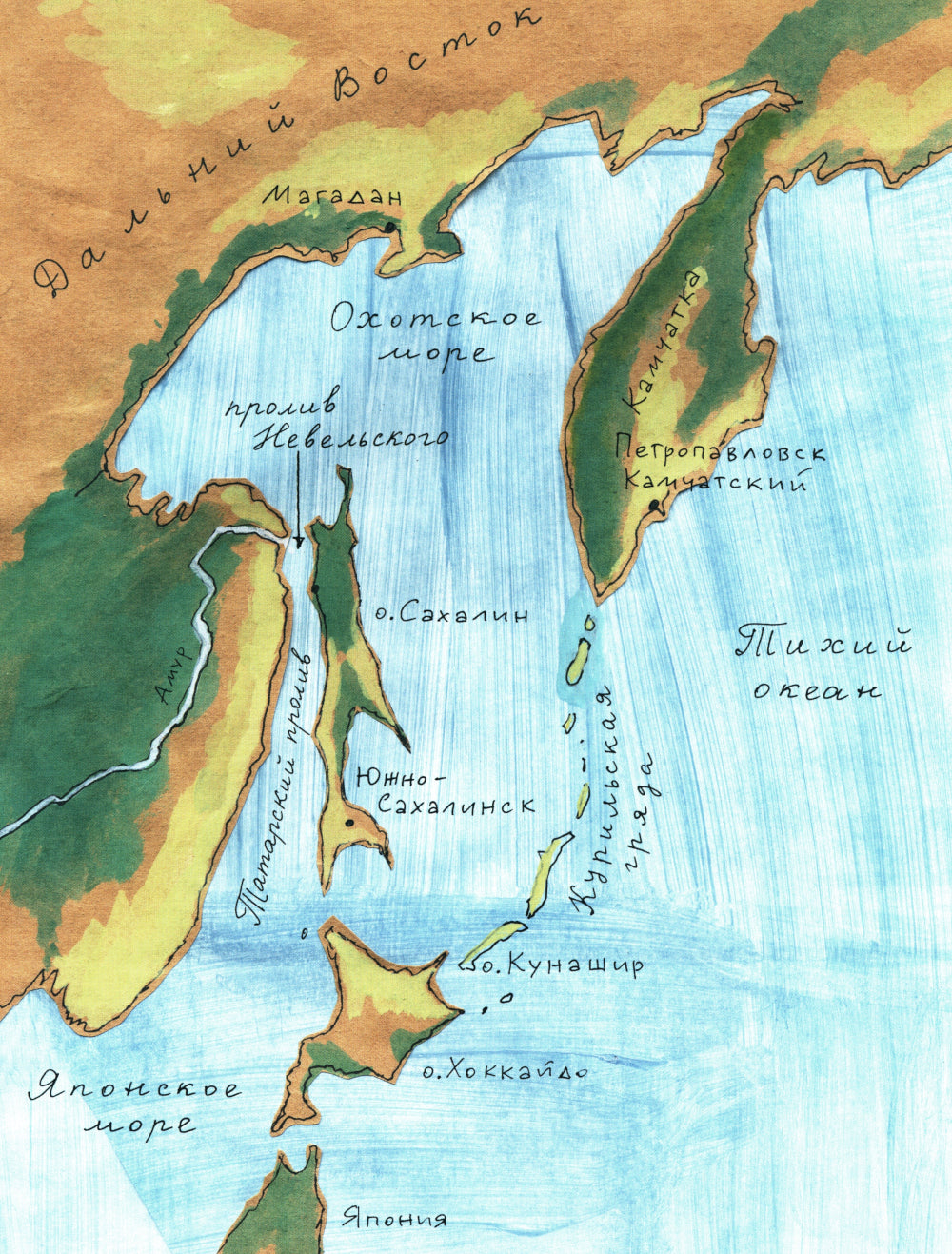 Сахалин лежит на границе двух миров: между суровым Охотским морем и тёплым Японским. Прогуляться по уникальной темнохвойной тайге, постоять под листом обычного лопуха размером со взрослого мужчину, попробовать поймать речного лосося голыми руками, заглянуть в кратер грязевого вулкана — всё это возможно на Сахалине, самом большом острове России.
