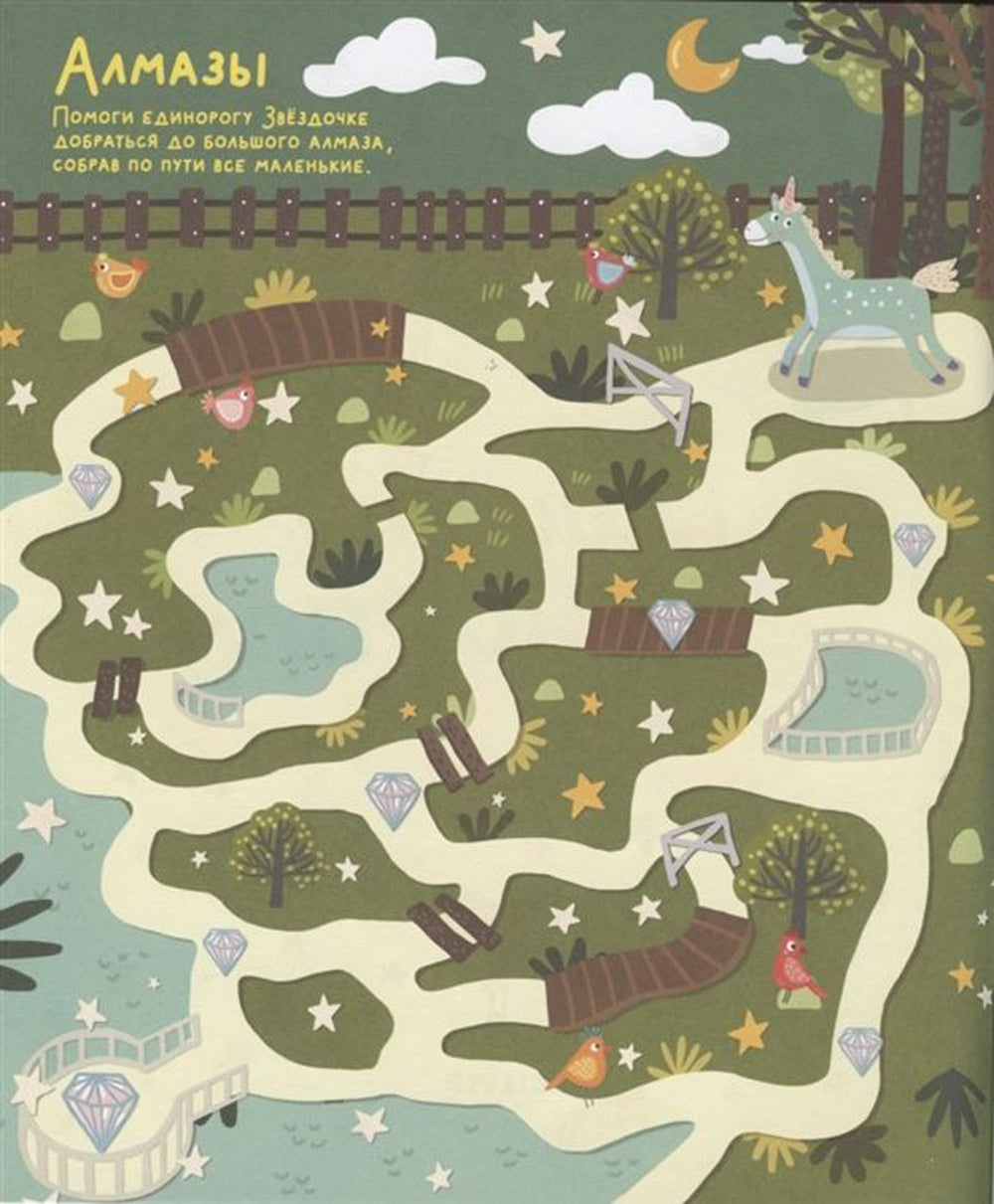 Если вы ещё сомневаетесь, что единороги существуют, то эта книга вам точно необходима. По бродилкам и лабиринтам вы дойдёте до волшебных садов, побываете в замках и покатаетесь с весёлыми единорогами на радуге. Вам понадобятся цветные карандаши или фломастеры, чтобы устроить небольшое соревнование на ловкость и сообразительность! Вперёд!