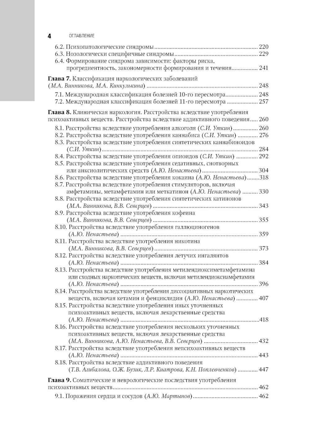 В третьем издании национального руководства «Наркология» рассмотрены важные аспекты наркологии: медико-биологические, клинико-терапевтические, реабилитационные, экспертные, диагностические, профилактические, организационные, социальные. Все представленные данные в значительной степени обновлены. Освещены существующие в настоящее время достижения нейробиологических исследований в области наркологии, в том числе вопросы генетики и фармакогенетики болезней зависимости; приведен подробный анализ эпидемиологических данных по распространенности употребления психоактивных веществ среди различных контингентов населения в течение последних двух десятилетий; в клинической части детально раскрыты критерии диагностики зависимости от различных новых психоактивных веществ. Большое внимание уделено современным подходам к терапии болезней зависимости, включая подробное описание медикаментозных, психотерапевтических и реабилитационных программ. Профилактические вмешательства рассмотрены с учетом гендерных и возрастных различий, отдельно изложены процедуры по оценке эффективности профилактических программ. Описаны расстройства, развивающиеся вследствие аддиктивного поведения, соматические и неврологические последствия употребления психоактивных веществ, коморбидность психических и наркологических заболеваний и другие важные и интересные вопросы. Руководство предназначено для врачей психиатров-наркологов, психиатров, врачей других лечебных специальностей. Материалы руководства могут быть использованы при обучении студентов медицинских вузов, на кафедрах и факультетах последипломного образования.