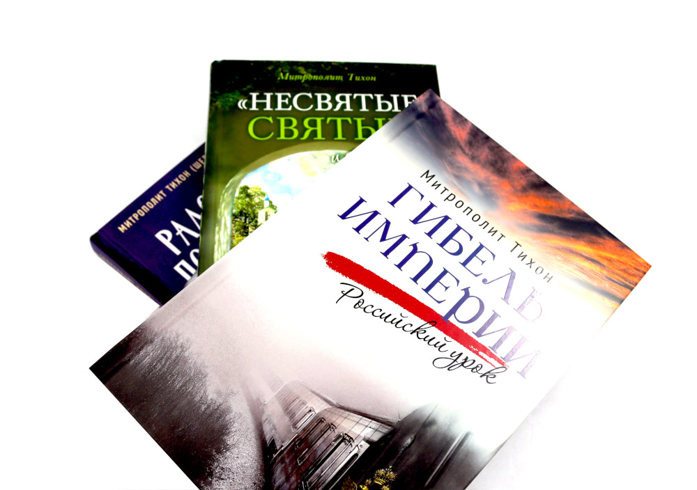 Комплект из 3 книг. «Несвятые святые и другие рассказы»: Один подвижник как-то сказал, что всякий православный христианин может поведать свое Евангелие, свою Радостную Весть о встрече с Богом. Конечно, никто не сравнивает такие свидетельства с книгами апостолов, своими глазами видевших Сына Божия, жившего на земле. И всё же мы, хоть и немощные, грешные, но Его ученики, и нет на свете ничего более прекрасного, чем созерцание поразительных действий Промысла Спасителя о нашем мире. «Радость покаяния»: Пост — время свободы и радости духовной, время освобождения от греховных привычек — всего того лишнего, бесполезного, чуждого человеческой душе, но так прочно укоренившегося в ней. Церковь каждый год заботливо подводит нас к времени Великого поста и так же бережно ведет нас день за днем в течение этого спасительного времени: от греха — к покаянию, от духовной смерти — к воскресению души. В основе этой книги — проповеди и выступления митрополита Псковского и Порховского Тихона (Шевкунова). В них читатель найдет важные мысли о смысле человеческой жизни, о том, чего Бог ожидает от каждого из нас, о Промысле Божием, о подготовке и должном проведении великопостного времени, о покаянии и хранении себя от греха, о молитве. И о смирении, без которого все, даже самые суровые, подвиги не принесут пользы душе, без которого не сможет быть достигнута главная цель жизни христианина — единение с Богом. «Твое Воскресение»: Новая книга митрополита Тихона (Шевкунова) посвящена величайшему событию, перевернувшему всю историю человечества, — Воскресению Христову. Вместе с автором и всей Церковью читатель сможет пройти путь от Светлого Христова Воскресения до дня Святой Троицы и отследить, как распространялась по Земле эта величайшая радость: от Сионской горницы до сердца каждого из нас. Речь пойдет и о вере апостола Фомы, и о смиренной любви Жен Мироносиц, об исцелении расслабленных наших душ, о простоте самарянки, которая всем сердцем искала Бога и обрела источник вечной жизни, о мужестве и мудрости слепорожденного. Вместе переживем и Вознесение Господне, отпразднуем день рождения Церкви — праздник Святой Троицы, вспомним схождение на апостолов Святого Духа Божия. Основанные на многовековом опыте Церкви и святых отцов объяснения владыки Тихона — лаконичные и живые, актуальные и современные. Размышления о столь важных понятиях христианской жизни интересны не только в пасхальный период, но полезны для чтения каждый день.