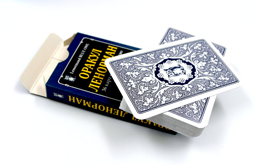 Колода Ленорман Голубая Сова – великолепная классика! Это один из самых популярных во всем мире вариантов малой колоды Ленорман из 36 листов. Колода идеально подходит для начинающих свой путь как в предсказаниях, так и в моделировании событий. Впервые она была издана в 1920 году и с тех пор различные издательства не перестают выпускать эту колоду. Свое название «Синяя сова» колода получила благодаря рубашке голубого цвета, на которой в окружении изящных узоров изображен символ колоды - Сова. Есть также варианты колоды: Красная Сова и Белая Сова, отличаются не только цветом рубашки, но и стилистикой использования. Стиль колоды - сдержанный, винтажный. У карт есть свой викторианский шарм и флер, изящное оформление, красиво подобранная цветовая гамма. Символы в этой колоде очень просты и понятны, нет лишних отвлекающих деталей, все доступно даже непосвященному человеку. Единственный нюанс, на который стоит обратить внимание – в некоторых вариантах колоды вместо игральных карт вставлены стихи – рифмованные значения символов, я лично отдаю предпочтение варианту с игральными картами. Колода Ленорман Синяя Сова создана для: - Тех, кто подбирает себе первый оракул Ленорман; - Ищет классическую колоду; - Ценит простые и элегантные решения, который подойдут для работы с любой тематикой и запросами. «Карты для гадания госпожи Ленорман» — одна из самых известных и точных гадательных колод. С ее помощью можно увидеть прошлое, познать настоящее и заглянуть в будущее. Существует несколько раскладов, среди которых каждый может найти подходящий для ситуации вариант. Госпожа Ленорман — французская прорицательница ХIХ столетия. В 18 лет она открыла свой гадательный салон, который имел грандиозный успех. Среди ее клиентов были как простые люди, так и знатные высокопоставленные особы. Самым известным прорицанием Ленорман было предсказание императорства Наполеону Бонапарту. Колода может быть интересна как начинающим, так и опытным прорицателям.