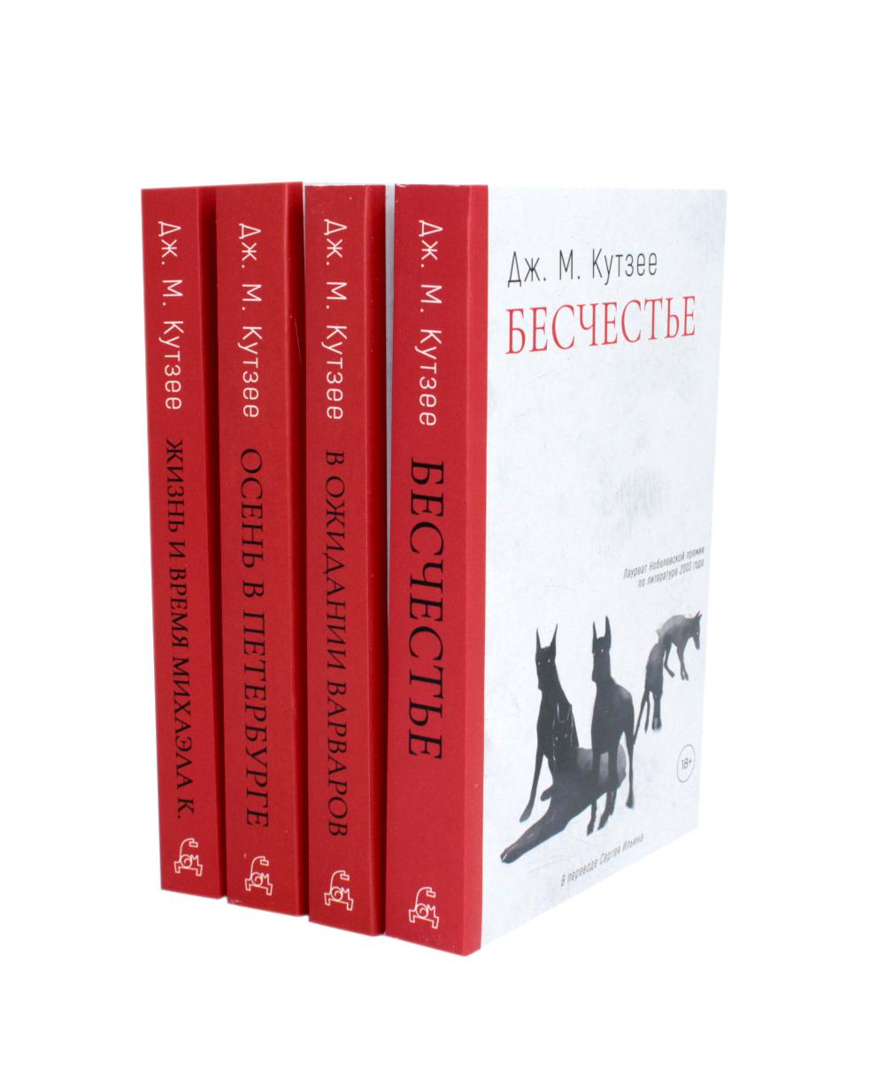 Комплект из 4-х книг известного южноафриканского писателя Дж.М. Кутзее, дважды удостоенного Букеровской премией и лауреата Нобелевской премии по литературе 2003 года. В комплет входят романы «Бесчестье», «В ожидании варваров», «Осень в Петербурге» и «Жизнь и время Михаэла К.»