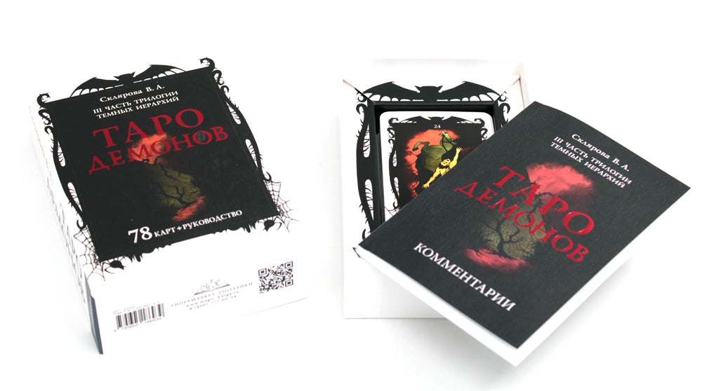 Эта колода — третья и завершающая в Черной трилогии «Темные Иерархии». Колода работает для раскрытия влияния демонических иерархий во всех аспектах бытия. Она даст вам возможность лучше проработать конфликтные и максимально сложные ситуации в жизни. «Таро Демонов» может использоваться как самостоятельная колода, и как колода параллельного плана (работать в паре в другой колодой). В книге даны пять примеров раскладов. Колода Таро Демонов «защищена» свыше от прямого воздействия негативных сил и вибраций, поэтому работа с ней безопасна для пользователей.