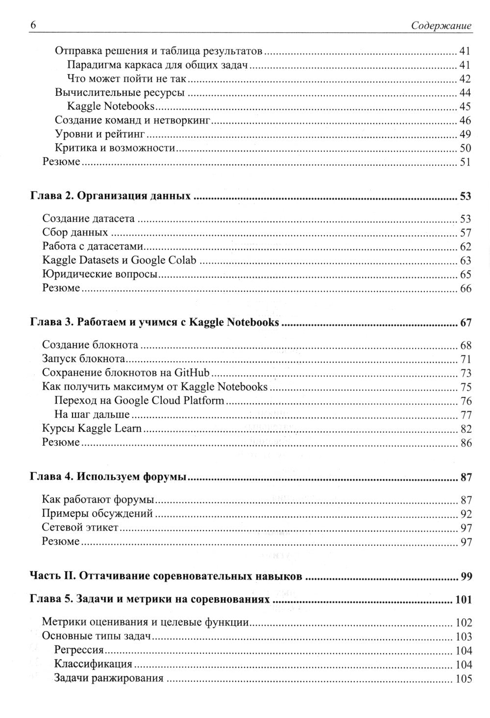 Книга рассказывает о продвинутых приёмах машинного обучения и науки о данных (data science) на основе задач, решаемых на всемирно известной платформе Kaggle. Показано (в том числе на примере увлекательных интервью с Kaggle-гроссмейстерами), как устроена платформа Kaggle и проводимые на ней соревнования. Изложенный материал позволяет развить необходимые навыки и собрать портфолио по машинному обучению, анализу данных, обработке естественного языка, работе с множествами. Подобран уникальный пул задач, охватывающих различные классификационные и оценочные метрики, методы обучения нейронных сетей, схемы валидации, выявление паттернов и трендов в материале любой сложности. Для специалистов по анализу данных и машинному обучению.