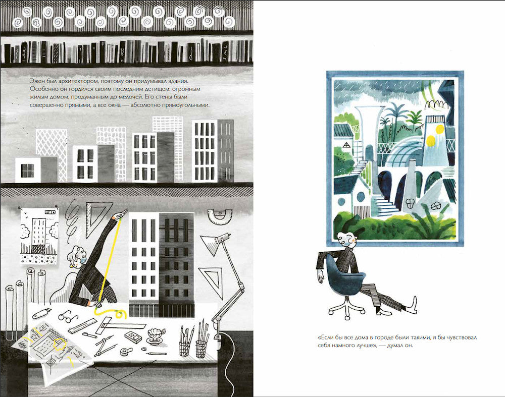 Жил да был архитектор. Звали его Эжен. Он любил ТОЛЬКО прямые линии и полный порядок, поэтому его дома были скучными и обыкновенными. Но вот однажды на стройке упало дерево...