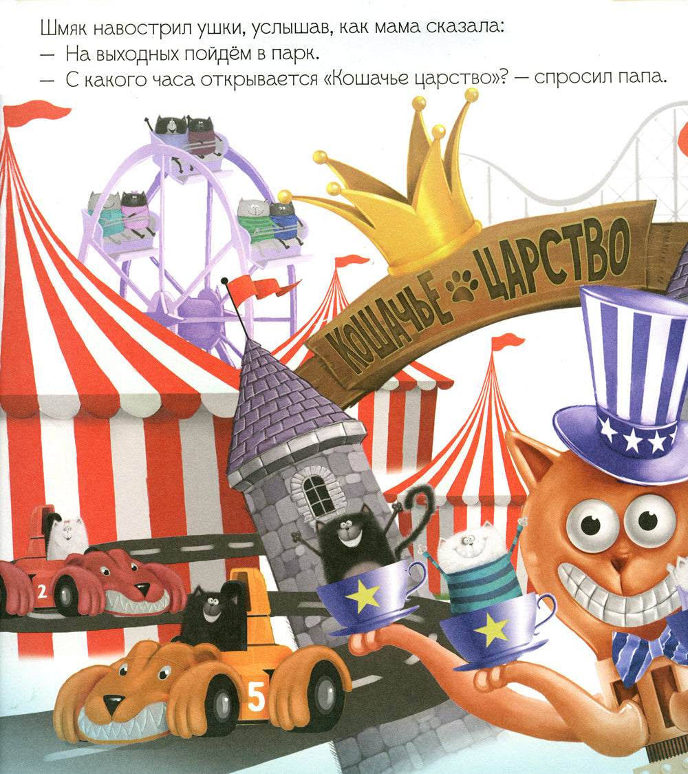 котёнок Шмяк узнал, что мама и папа собираются устроить сюрприз для его сестрёнки на день рождения — сводить всех в парк аттракционов «Кошачье царство». Родители попросили его сохранить тайну до выходных и никому не рассказывать, даже его лучшему другу Сырнику. Вот это испытание для Шмяка! Сможет ли он сохранить секрет?
