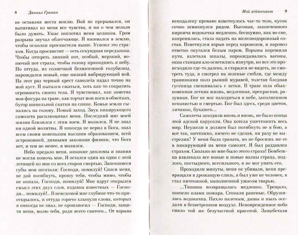 Даниил Александрович Гранин — выдающийся русский писатель, участник Великой Отечественной войны, лауреат премии «Большая книга» 2012 года за новый роман «Мой лейтенант». Автор знаменитых романов «Иду на грозу», «Зубр», «Картина», экранизированного исторического романа «Вечера с Петром Великим», «Блокадной книги» в соавторстве с A.M. Адамовичем. В романе «Мой лейтенант» запечатлена память самих участников трагических событий обороны Ленинграда, восстанавливающая многие неожиданные факты военных действий, увиденных глазами простого лейтенанта, бытовые детали фронтовой жизни; это взгляд на Великую Отечественную из траншей и окопов, это новое видение событий, неоднократно описанных историками.