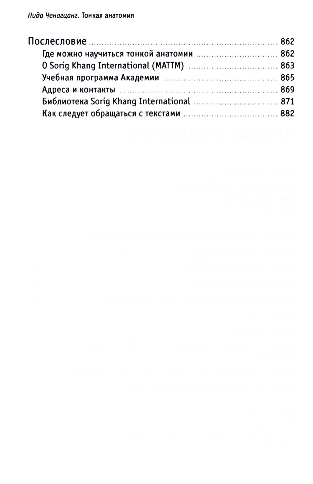 Эта книга знакомит современного читателя с тонкой анатомией — уникальной и одновременно тайной тибетской наукой о наших теле, энергии и уме, имеющей тесную связь с тибетской медициной и тибетской йогой. В книге дано описание энергетической структуры человека — каналов, чакр, ветров-энергий, капель энергии тигле — и дополнительная информация. В приложении приводится трактат Третьего Кармапы Рангджунга Дордже «Забмо Нангдон» («Глубокий внутренний смысл») с комментариями Джамгона Конгтрула Лодрё Тхае. Это прекрасный источник глубоких знаний для тех, кто интересуется тибетской медициной сориг, йогой, медитацией, буддизмом, медицинскими системами Востока. Доступный способ изложения материала позволяет легко усвоить этот глубокий предмет и применить его в своей практике.