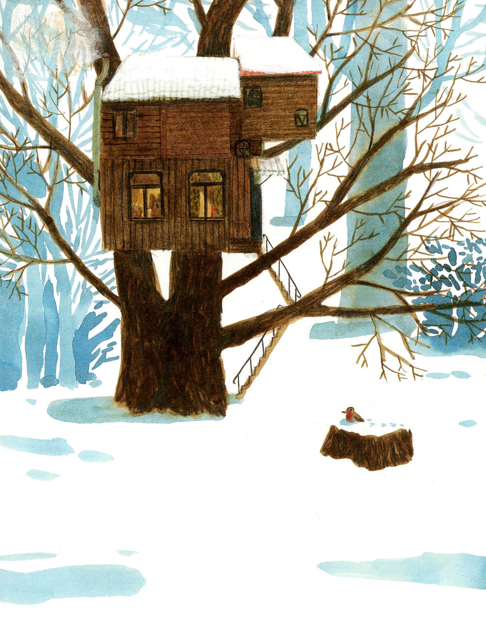 За окном снегопад, а в домике на дереве, где живут котёнок Калачик и жучок-долгоносик Хоботок, тепло и уютно. Вот только Калачику скучно: Хоботок уткнулся в книги и не обращает на него внимания. Даже на снежинки смотреть не хочет! Что же такого интересного в этих книгах, думает Калачик и берёт из стопки книгу о птицах...