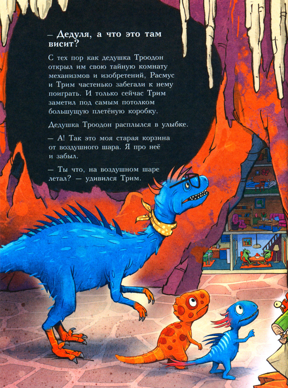 Расмус и Трим гостили у дедушки Трима, когда почтальон принёс письмо от тётушки Троодон. Она писала, что далеко-далеко, за болотным лесом, на верхушке Большой сосны заметила гнездо, а в гнезде брошенное яйцо. Родителей и след простыл, зато поблизости летал громадный динозавр. Как спасти будущего малыша, если с земли до гнезда не добраться? Конечно, полететь туда на воздушном шаре, который очень вовремя нашёлся в дедушкиной тайной комнате механизмов и изобретений. Но Расмус жутко боялся высоты, и эта идея ему сначала не понравилась. Правда, потом ему стало жалко яйцо-сиротку, и скрепя сердце он согласился отправиться со своим лучшим другом в дальний и опасный полёт. О приключениях Расмуса и Трима читайте в других книгах серии «Друзья-динозаврики»: «Яйцо», «Заплыв», «Поход», «Зимняя рыбалка», «Гигантский осьминог», «Испытание», «Клевер удачи», «Тайна».