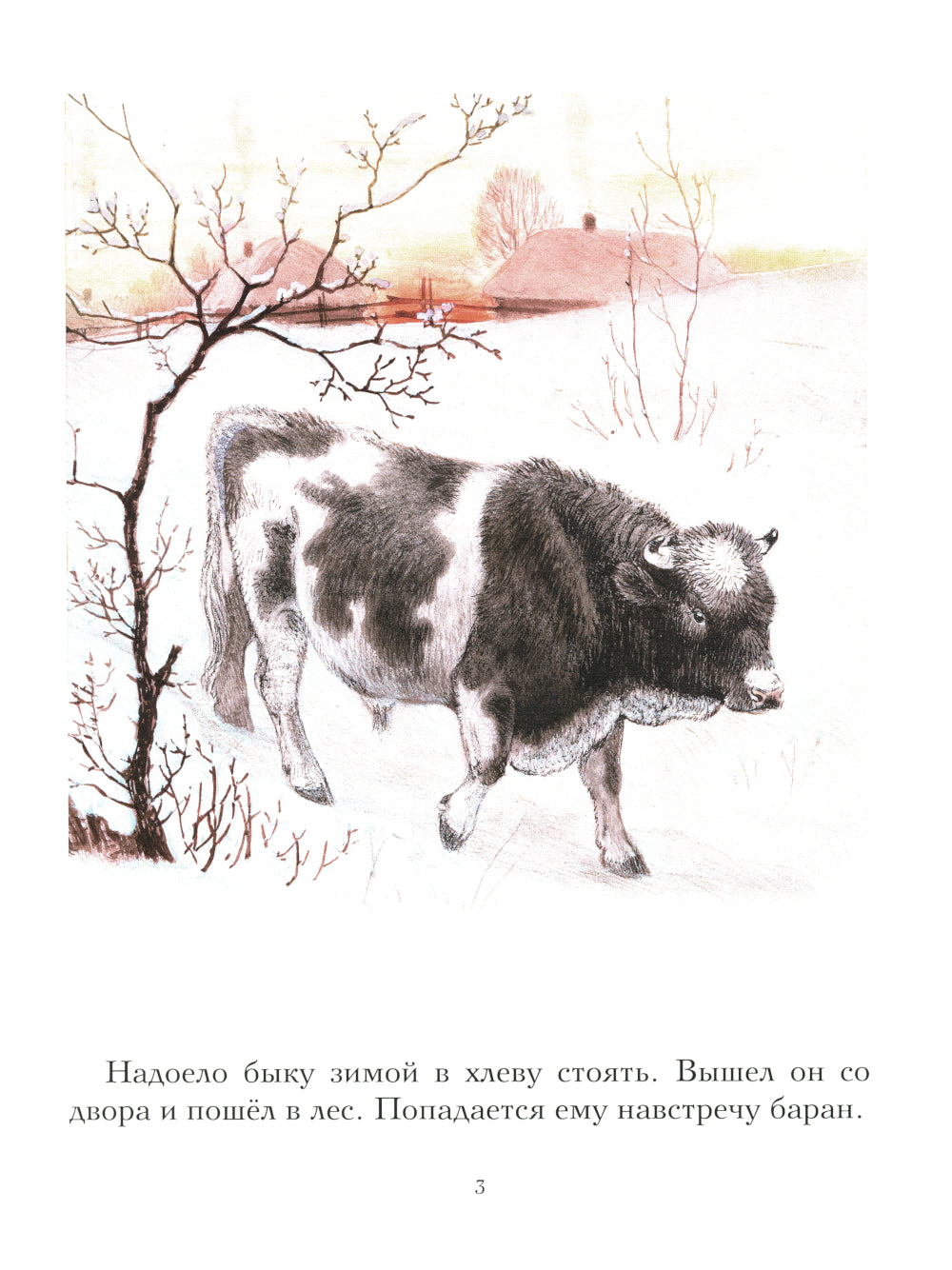 Однажды повстречались в лесу бык, баран, свинья, гусь и петух. Каждый ушёл со своего двора «от зимы лета искать». Чтобы укрыться от холодов, они усердно потрудились и построили себе тёплую избу. На беду прознали о них лиса, волк и медведь. Задумали они напасть на избушку, всех съесть, а потом самим пожить в тепле. Но, как положено в сказках, добро всегда побеждает зло. Дружные звери прогнали алчных хищников и зажили себе, горя не зная.