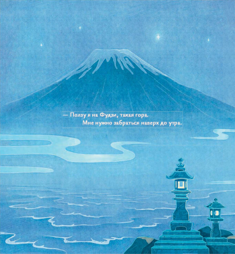 Храбрая улитка ползёт по склону Фудзи не просто так. Дорога длинна и трудна, в ночной темноте притаились недобрые духи, но путешественницу это не остановит. Ведь этой ночью, в праздник Танабата, на самой вершине горы встречаются звёзды Пастух и Ткачиха, а потом Млечный Путь снова разлучит их на целый год… Кто позаботится о влюблённых, если не маленькая улитка?