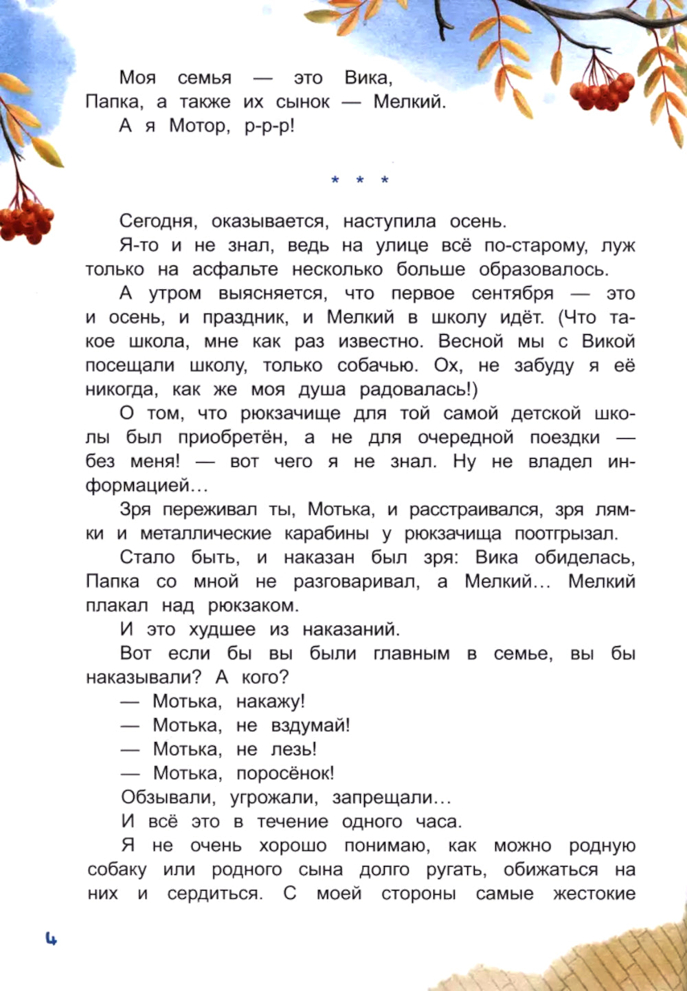 Как заводить новых друзей и не терять старых? Как смириться с правилами, но оставаться собой? Почему мамы и бабушки не поддаются дрессировке? А если друг оказался вдруг и не друг, и не враг, а… кот? Что делать? Кто виноват? Ответы на волнующие вопросы, полезные советы для очень маленьких детей и не очень взрослых родителей — от таксы по имени Мотор. Книга адресована детям от 6 лет.