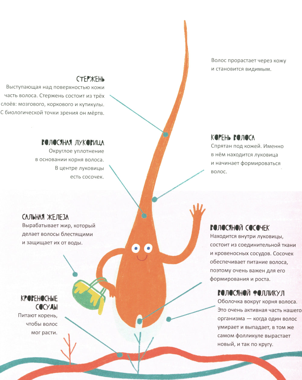Прямые, вьющиеся, волнистые, рыжие, светлые, каштановые, седые... Волосы у нас почти везде, и они много для чего нужны. Но иногда там могут поселиться вши — а это очень неприятно. В этой книге ты найдёшь ответы на вопросы: — Сколько у нас волос? — В чём они нам помогают? — Зачем животным шерсть? — Долго ли растут волосы? — Почему у дедушки с бабушкой седые волосы?