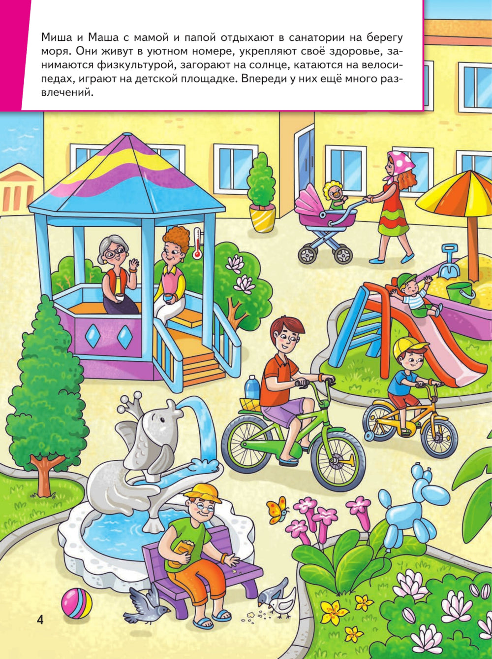 Многие родители тревожатся о том, как их малыши будут вести себя в незнакомых местах, ведь они только познают этот мир. Если вы собираетесь провести отпуск на море, покажите этот виммельбух ребёнку. Вместе с близнецами Мишей и Машей можно отправиться в путешествие к морю на самолёте, а вернуться на поезде. Рассматривая картинки в этой книге, ребёнок узнает, что ему надо научиться плавать, что на берегу можно строить замки из песка, собирать красивые ракушки, а главное — весело и интересно проводить время. Виммельбух про Мишу и Машу не только способствует социальной адаптации ребёнка, но и развивает фразовую речь, пространственное и образное мышление, а так же позволяет подготовить малыша к длительному путешествию без стресса.