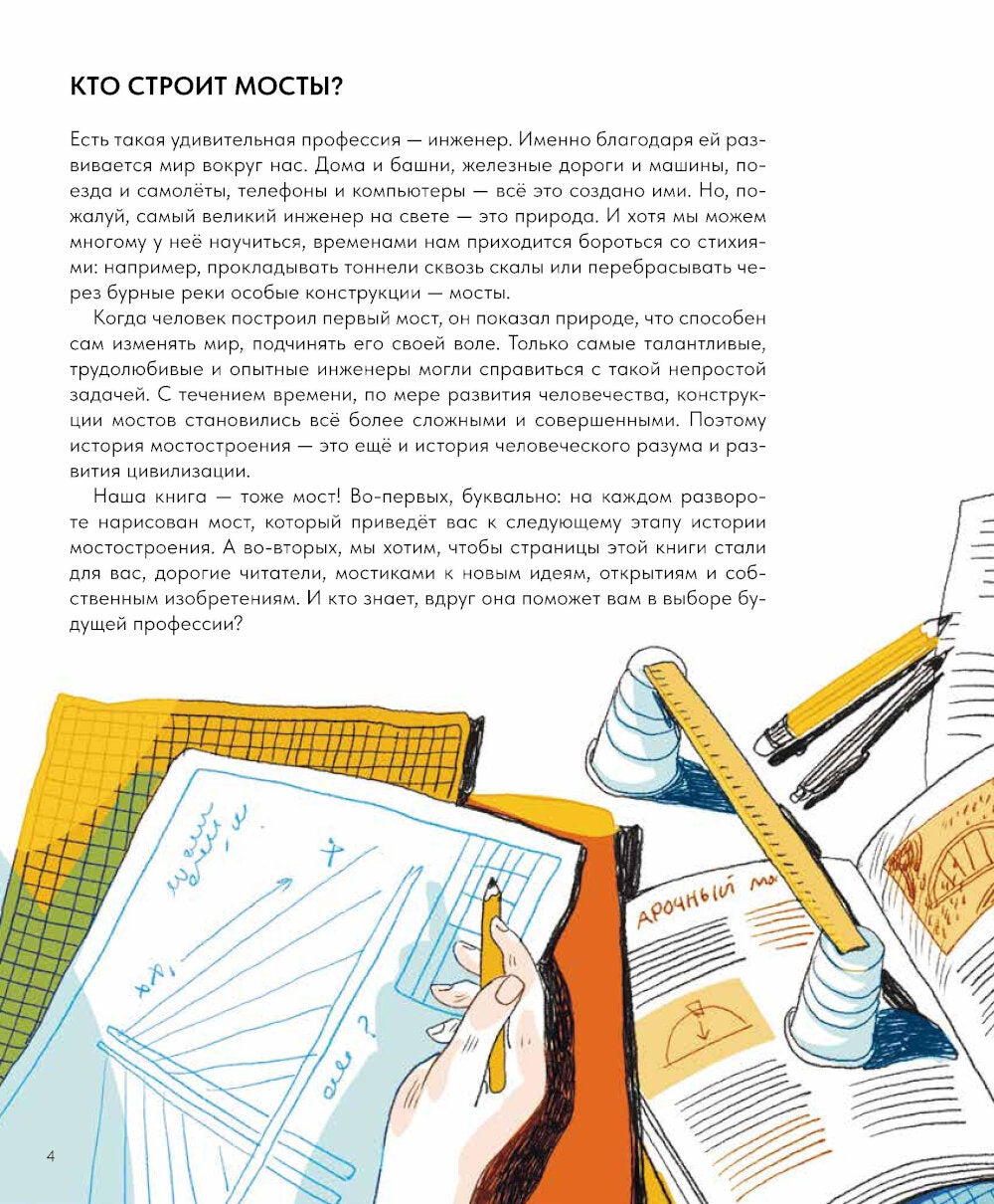 Мосты помогают нам перебраться через препятствие и служат важным транспортным звеном. И одновременно они могут быть шедеврами архитектуры, настоящими произведениями искусства. Они демонстрируют красоту и изобретательность инженерного замысла. В этой книге вы найдете все о том, какие бывают мосты, как они строились и преображались с течением времени. А также узнаете, что такое «арки», «фермы», «кружалы», «пилоны» и другие инженерные словечки. Автор книги, Айрат Багаутдинов, историк архитектуры, экскурсовод и лектор, руководитель компании «Глазами инженера».