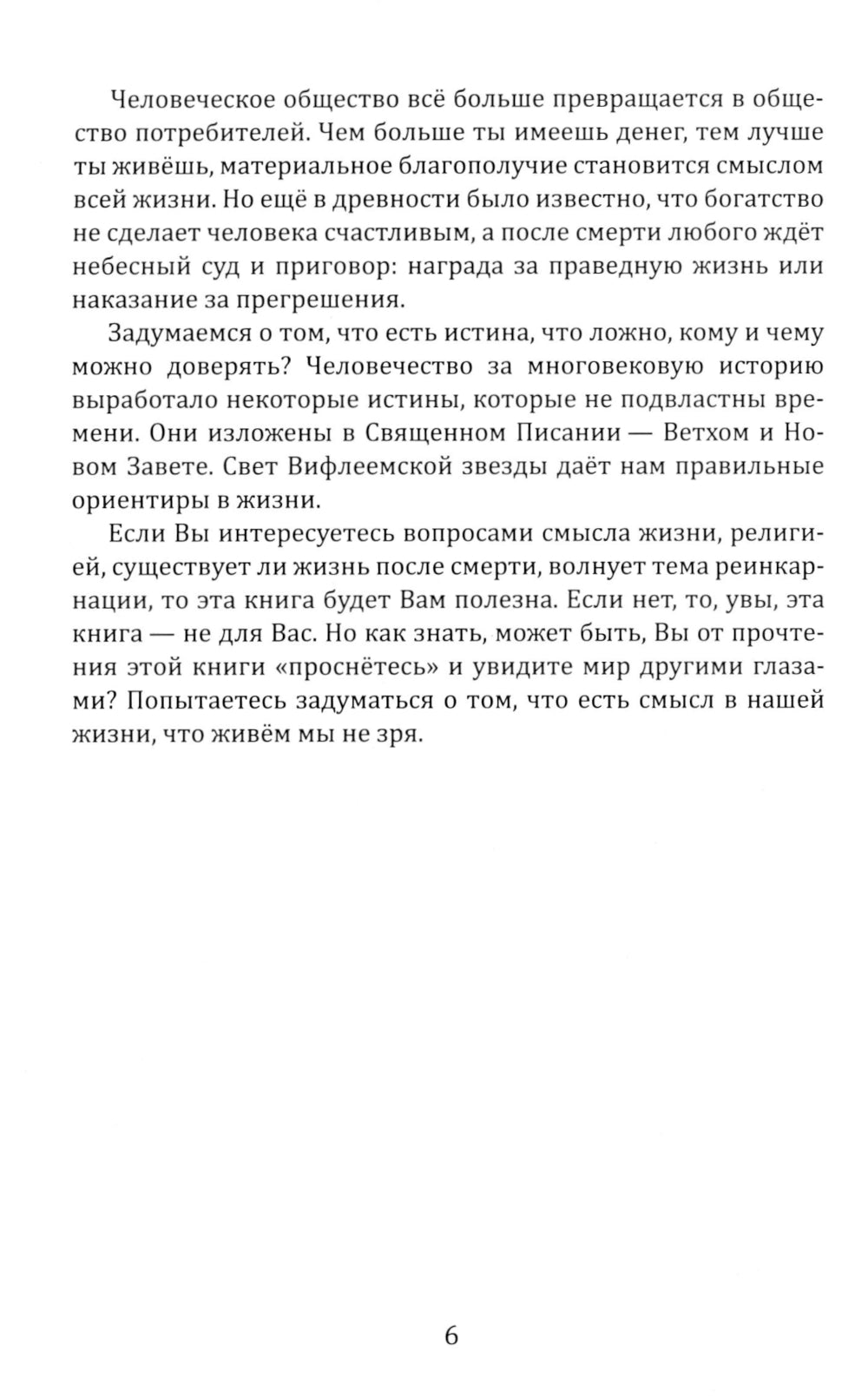 Книга позволяет заглянуть в неведомые духовные миры, окружающие наш материальный мир. В ней в простой и доступной форме описаны полевая структура человека, астральный мир и жизнь души после смерти. Автор книги попытался дать ответы на «вечные» и, в то же время, насущные вопросы: в чём заключается смысл жизни человека, куда уходит душа после смерти, реинкарнация — это миф или реальность? Приводятся аргументы как в пользу учения о реинкарнации, так и против. В книге на основе сопоставления и анализа трёх мировых религий делается вывод, какая религия является истинной. Даются рекомендации, как правильно выбрать жизненный путь, указывается, что и кто — видимый и невидимый — мешает нашему духовному развитию. Приведены примеры небесной помощи различным народам мира, начиная со времени исхода древних евреев из Египта вплоть до современных событий.