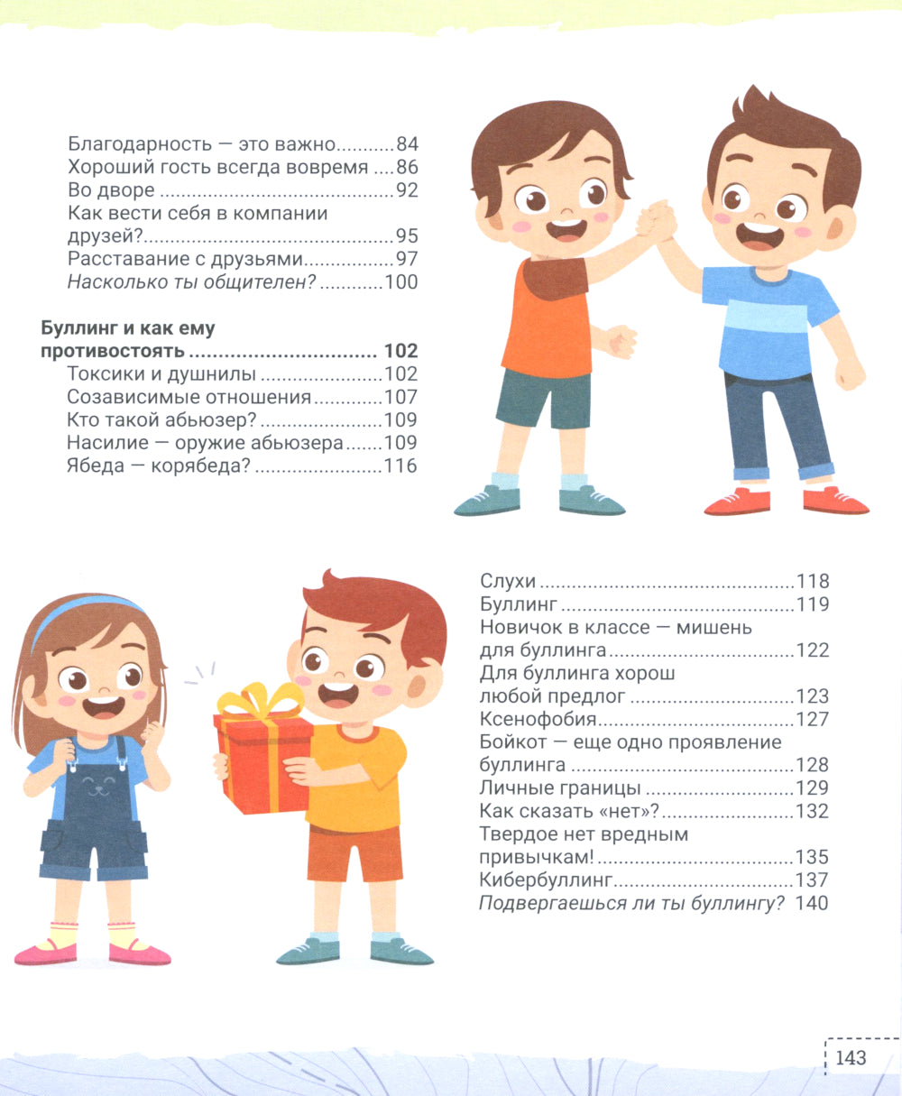 Буллинг — это когда кто-то обижает других словами или поступками. Такое может произойти в школе, на улице и даже дома. Самое важное, что нужно помнить: ты не одинок и, к сожалению, далеко не единственный человек, который попадает в подобную ситуацию. Как распознать буллинг? Как защищать себя и других во время агрессии? Как «обезоружить» буллера? Как избежать общения с токсиками и душнилами? Как управлять своими эмоциями? Как создать настроение? Как выработать силу воли? Как обрести верных друзей? Как стать добрым и отзывчивым человеком? Ответы на эти и множество других важных вопросов, касающихся взаимодействия со сверстниками и взрослыми, ты найдешь в данной книге — своем путеводителе в мире дружбы и взаимопонимания с другими людьми. Советы, упражнения и тесты помогут тебе не только справиться с буллингом, агрессией и насилием, но и разобраться в себе, своих эмоциях и научиться завоевывать друзей. Для среднего школьного возраста.