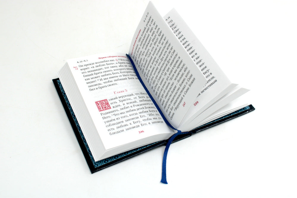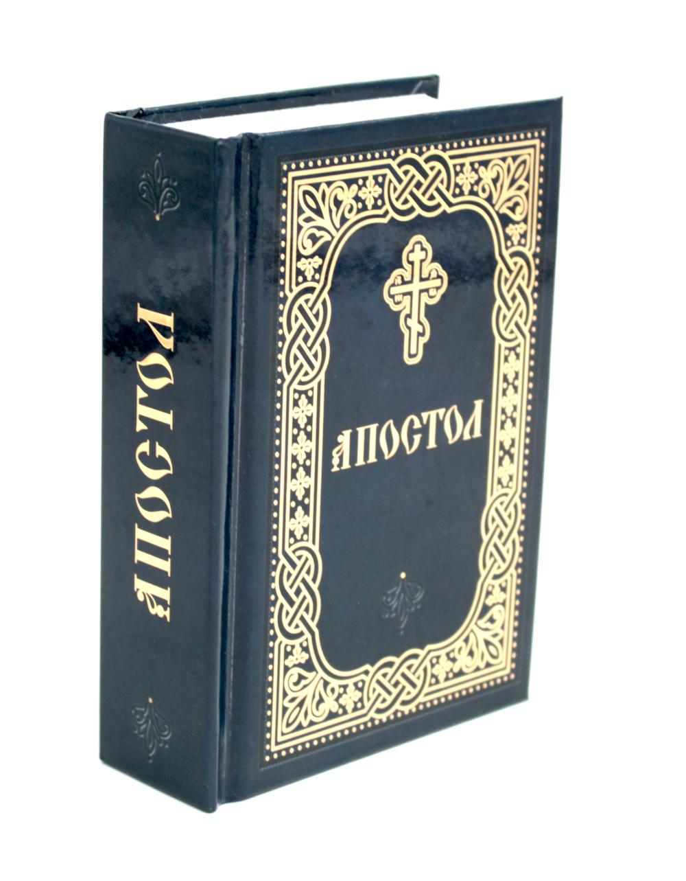 Апостол на русском языке в Синодальном переводе. Издание удобного малого формата. Текст отпечатан стандартным шрифтом. Использован твердый переплет с тиснением золотой фольгой, качественная офсетная бумага. По благословению Святейшего Патриарха Московского и всея Руси Кирилла.