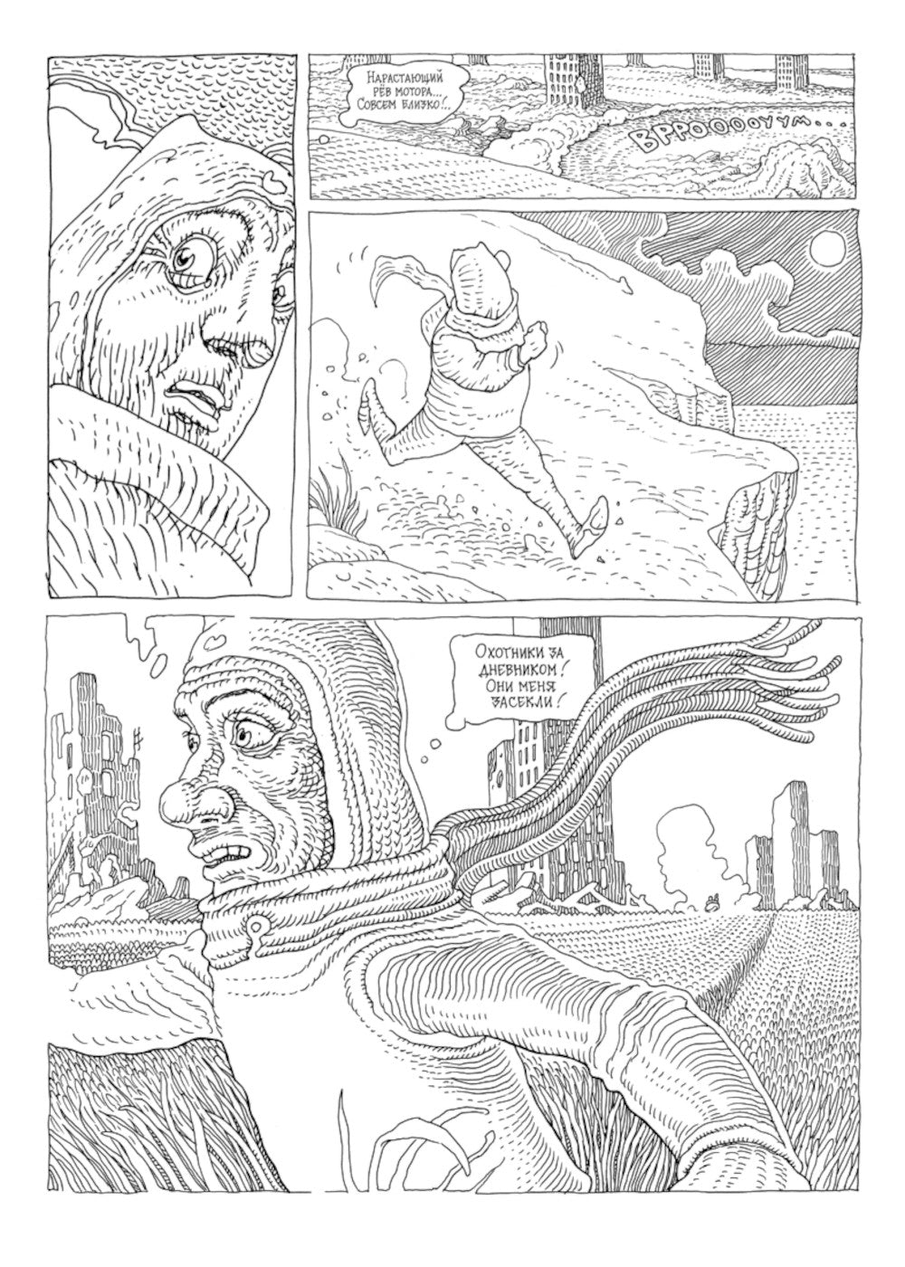 Даже в футуристичном мире, полном невиданных технологий и немыслимых достижений, раскинулись сети жестокой тоталитарной машины. Сферы искусства оплетены строгой цензурой, и вымарать из истории имя созидателя здесь — обычное дело. Главный герой этого комикса — Мика Шоку, сын некогда прославленного писателя, а ныне порицаемого творца, чьи труды власть старательно изгоняет в небытие. Но вновь и вновь Мику преследует один и тот же сон о загадочном папином дневнике, до которого грезит добраться государство. Что, если этот манускрипт — вовсе не вымысел? В чём его угроза новому мировому порядку? И как найти записи, которые ты видел лишь в сновидении? «Папин дневник» — новая работа ветерана индустрии Ивана Ешукова («Боровицкий», «Заплаточники»), в которой он вновь выходит за рамки устоев своим поразительным графическим стилем и ошарашивающим воображение сюжетом.