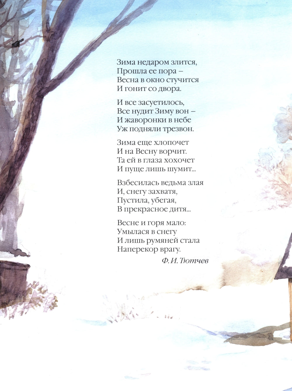 В книге «Весенние стихи» серии «Большая поэзия для маленьких детей» собраны лучшие поэтические произведения классиков отечественной литературы: Пушкина, Лермонтова, Фета, Тютчева, Некрасова, Есенина и других, посвященные весне. Детей нужно как можно раньше начинать знакомить со стихами. Для ребенка очень важна форма, мелодичность, ритмичность, красота звучания поэтических строк. Предлагаемые стихи, мелодичные, ясные, эмоционально окрашенные, соответствуют всем этим требованиям. Они развивают в детях чувство прекрасного, воспитывают любовь к природе. Кроме того, эти стихи, дополненные великолепными акварельными иллюстрациями Владимира Белоусова, познакомят маленьких читателей с удивительным миром природы в весеннее время.