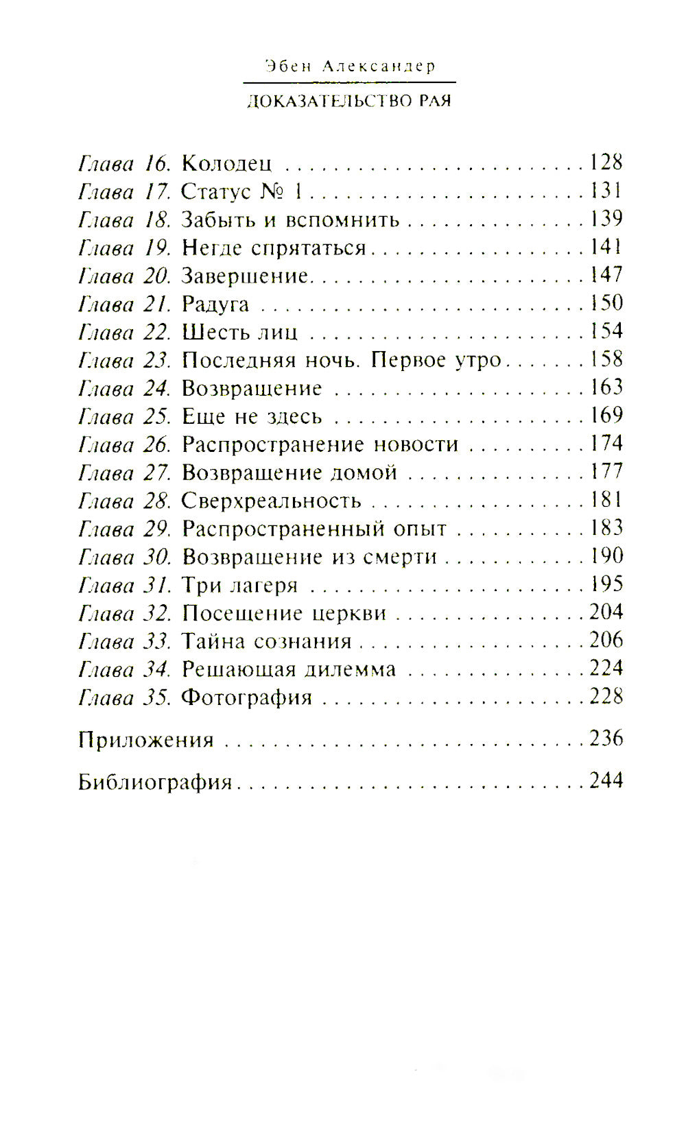 В этой книге доктор Эбен Александер, нейрохирург с 25-летним стажем, профессор, преподававший в Гарвардской медицинской школе и других крупных американских университетах, делится с читателем впечатлениями о своем путешествии на тот свет. Его случай уникален. Пораженный внезапной и необъяснимой формой бактериального менингита, он чудесным образом исцелился после семидневной комы. Высокообразованный медик с огромным практическим опытом, который прежде не только не верил в загробную жизнь, но и мысли о ней не допускал, испытал перемещение своего «я» в высшие миры и столкнулся там с такими поразительными явлениями и откровениями, что, вернувшись к земной жизни, счел своим долгом ученого и врачевателя поведать о них всему миру.