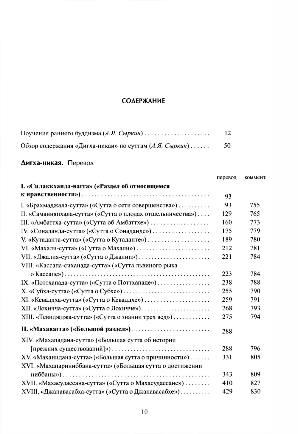Дигха-никая («Собрание длинных поучений») является первым сборником палийской Сутта-питаки, в который вошли в основном самые старые буддийские тексты. Они важны для изучения проблем, связанных с зарождением и ранним этапом развития буддизма, и содержат ценнейшие данные о первоначальной истории этой религии. Включенные в сборник 34 сутты (санскр. сутры) разделены на три раздела (вагги). В «Силаккханда-вагге» («Раздел о нравственности», сутты 1-13) трактуются опросы буддийской морали; в «Махаваггу» («Большой раздел», сутты 14-23) вошли в основном сутты, начинающиеся со слова «маха», означающего «большой», «великий»; раздел «Патика-вагга» («Раздел, [открывающийся суттой] о Патике») назван по сутте, с которой он начинается. В число важнейших сутт памятника входят «Махапариниббана-сутта», где описываются последние дни и уход Будды в нирвану; «Сингаловада-сутта», в которой Будда обсуждает этику и практики буддизма со своими последователями; «Саманняпхала-сутта»; «Брахмаджала-сутта», которая описывает и сравнивает суждения Будды и других индийских мудрецов по вопросам бытия. Уникальность перевода А.Я. Сыркина состоит в том, что это единственный научный комментированный перевод целого сборника текстов буддийского канона тхеравады с пали на русский язык. Полный перевод всех 34 сутт Дигха-никаи публикуется впервые. Перевод сопровождают вступительные статьи, комментарии, библиография и предметно-именной указатель.