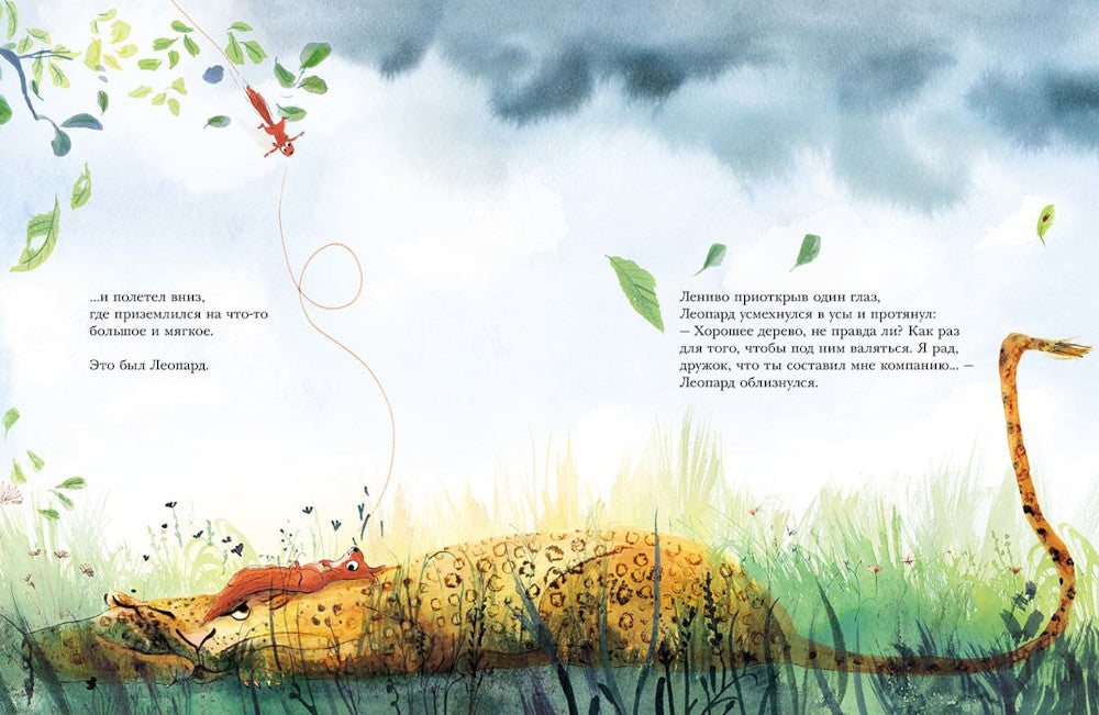 Однажды бельчонок Рыжик нашёл высокое и красивое дерево. Как же он обрадовался! Такое отличное дерево — и только для него одного. Он будет жить здесь, наслаждаясь тишиной, покоем и полной свободой, и никто-никто не будет ему мешать! Но вскоре выяснилось, что это замечательное дерево нравилось не только Рыжику. Своим домом дерево считали и птицы, которые любили отдыхать на его ветвях. И гусеницы, которые поедали вкусные листочки. И букашки, которые жили под корой. И звери, которые приходили почесать спинку о шершавый ствол... Нет, делить дерево с соседями Рыжик не собирался. Поэтому он решил отправиться на поиски другого дома — только для себя одного. Правда, далеко уйти ему не удалось. Внезапно Рыжик угодил в лапы леопарда, который, как ни странно, тоже считал дерево исключительно своим, поскольку любил отдыхать в его прохладной тени. Кроме того, хищник был уверен, что все обитатели дерева также принадлежат ему, леопарду... Как же он ошибался. Никто из насекомых и мелких зверушек, населявших дерево, не считал себя ничьей собственностью. Объединив усилия, они не только спасли Рыжика, но и навсегда прогнали леопарда. Эта книга даст повод поговорить с ребёнком о важных вещах: о желании присваивать и умении делиться; о жизни в одиночку и в близком соседстве. Иными словами, о жизни в социуме, в общем пространстве, будь то семья, дом, целый город или даже вся наша планета. Кроме того, с этой книжкой-картинкой можно поиграть, как с виммельбухом. Кто сумеет показать и назвать всех насекомых и зверушек на дереве? А вот задание для самых внимательных: начиная с самого первого разворота, отыщите на страницах книги серую белочку, которая всю дорогу украдкой наблюдает за Рыжиком из густой листвы.