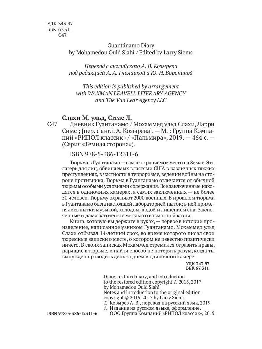 Автор/составитель Слахи Мохаммед Ульд;Симс Ларри