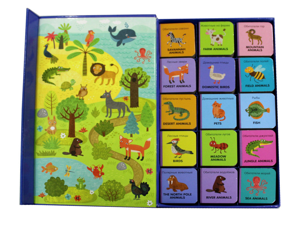 Эти 15 книжек-малышек – настоящая энциклопедия для самых маленьких, которая познакомит малышей с животными. Как раз для маленьких пальчиков в эту коробку вложено 15 книжечек-кубиков. У них плотные картонные странички, которые предпочитают ребёнку с мелкой моторикой. 15 книжек-кубиков: Обитатели морей; Обитатели саванн; Животные на ферме; Лесные птицы; Лесные звери; Домашние птицы; Домашние животные; Полярные Животные; Обитатели пустынь; Обитатели гор; Обитатели джунглей; Обитатели лугов; Обитатели полей; Обитатели водоёмов; Рыбы.