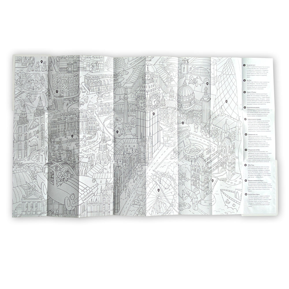 Комплект из 5 карт-раскрасок. На картах отмечены главные символы столиц. Каждая достопримечательность на карте сопровождается интересным фактом о ней или ее создании. Возьми с собой и узнай о главных символах города. Город — полотно юного художника. Раскрась мегаполис в своих цветах! Карта-раскраска развивает фантазию, любознательность и знакомит с мировыми достопримечательностями. Раскрашивайте с друзьями карту города и узнавайте особенности его культуры и строения.