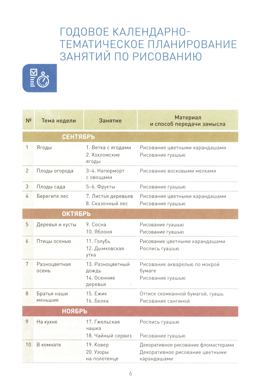 В данном пособии представлены конспекты занятий с детьми 5-6 лет по рисованию гуашевыми и акварельными красками, цветными карандашами и восковыми мелками консервативными и нетрадиционными методами. Эти занятия обеспечивают положительную эмоциональную отзывчивость у детей к окружающему миру, развитие самостоятельности, настойчивость, аккуратность, трудолюбия, навыки довести работу до конца, формирование изобразительных навыков и умений. Представленные в пособии конспекты занятий разработаны в рамках вариативности программы «ОТ РОЖДЕНИЯ ДО ШКОЛЫ» и помогают педагогу разнообразить занятия с детьми. Занятия составления по тематическому принципу: одна тема объединяет все занятия по лепке, аппликациям, рисованию в течение недель.