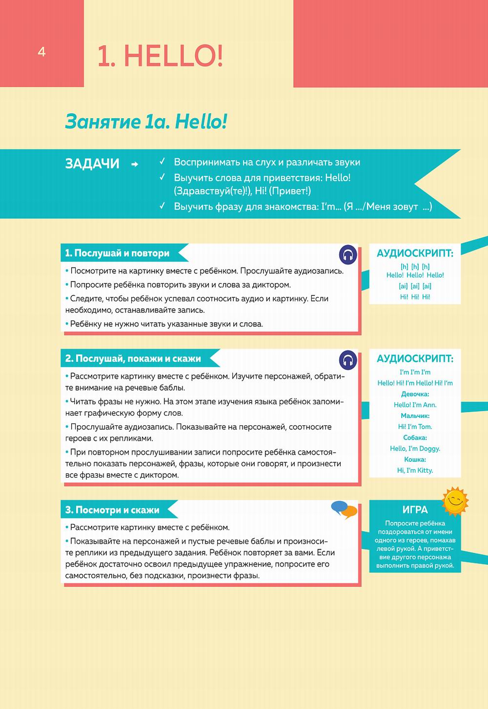 Данный курс по английскому языку создан специально для детей 5–6 лет. Курс удобен как для занятий дома с родителями, так и с педагогом в детском саду, кружках, в индивидуальных классах. - приспособление для первого знакомства с английским языком; - 10 самых актуальных и сложных ситуаций для общения; - Игры и задания для активизации свободной речи ребенка; - Методические рекомендации по занятости на каждой странице; - Развивающие задания в игровой форме. Дети научатся: - распознавать английскую речь на слух; - произносить английские звуки, слова и фразы; - общаться в повседневных условиях.