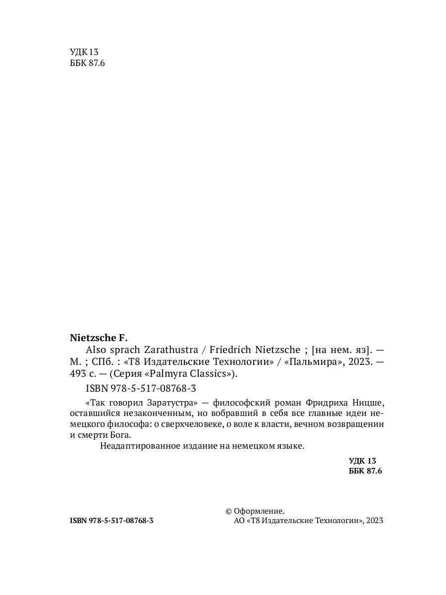 Автор/составитель Ницше Фридрих