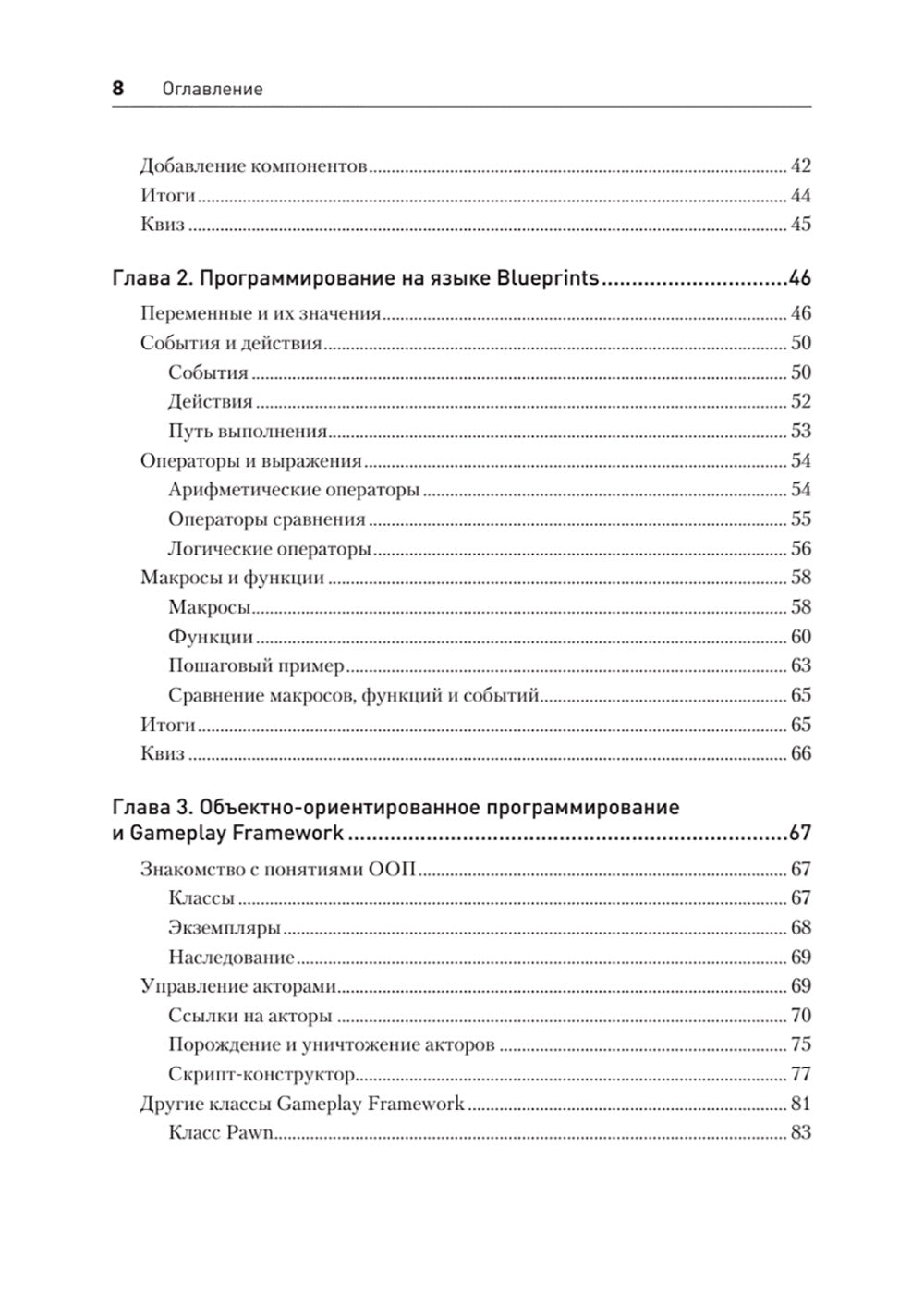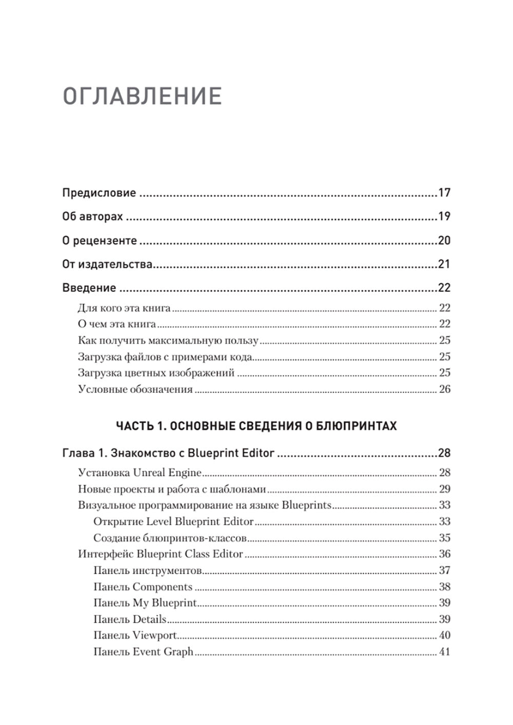 Язык визуального программирования Blueprints используется в движке Unreal Engine, чтобы дизайнеры могли работать со сценарием игр, а программисты — создавать базовые элементы, которые могут легко дорабатываться дизайнерами. Эта книга познакомит вас со всеми возможностями редактора Blueprint Editor. Советы и рекомендации экспертов сделают вашу работу быстрой и эффективной. Вы узнаете, как использовать переменные, макросы и функции, познакомитесь с основами объектно-ориентированного программирования, откройте Gameplay Framework, научитесь выстраивать взаимодействие блюпринтов друг с другом. Основная часть книги посвящена исследованию реальных игр: шутера от первого лица. Вы создадите стандартный шаблон и пройдете путь от механики съемки до достаточно сложных вещей: экранного интерфейса и умных врагов с искусственным интеллектом. Вы узнаете о структурах данных (массивах, отображениях и перечислениях), векторных операциях и процедурной генерации. Наконец, вы поймете, как создаются игры для системной реальности. Внимательно прочитав эту книгу, вы приобретете навыки и знания, необходимые для разработки полнофункциональных игр, способных увлечь пользователей.