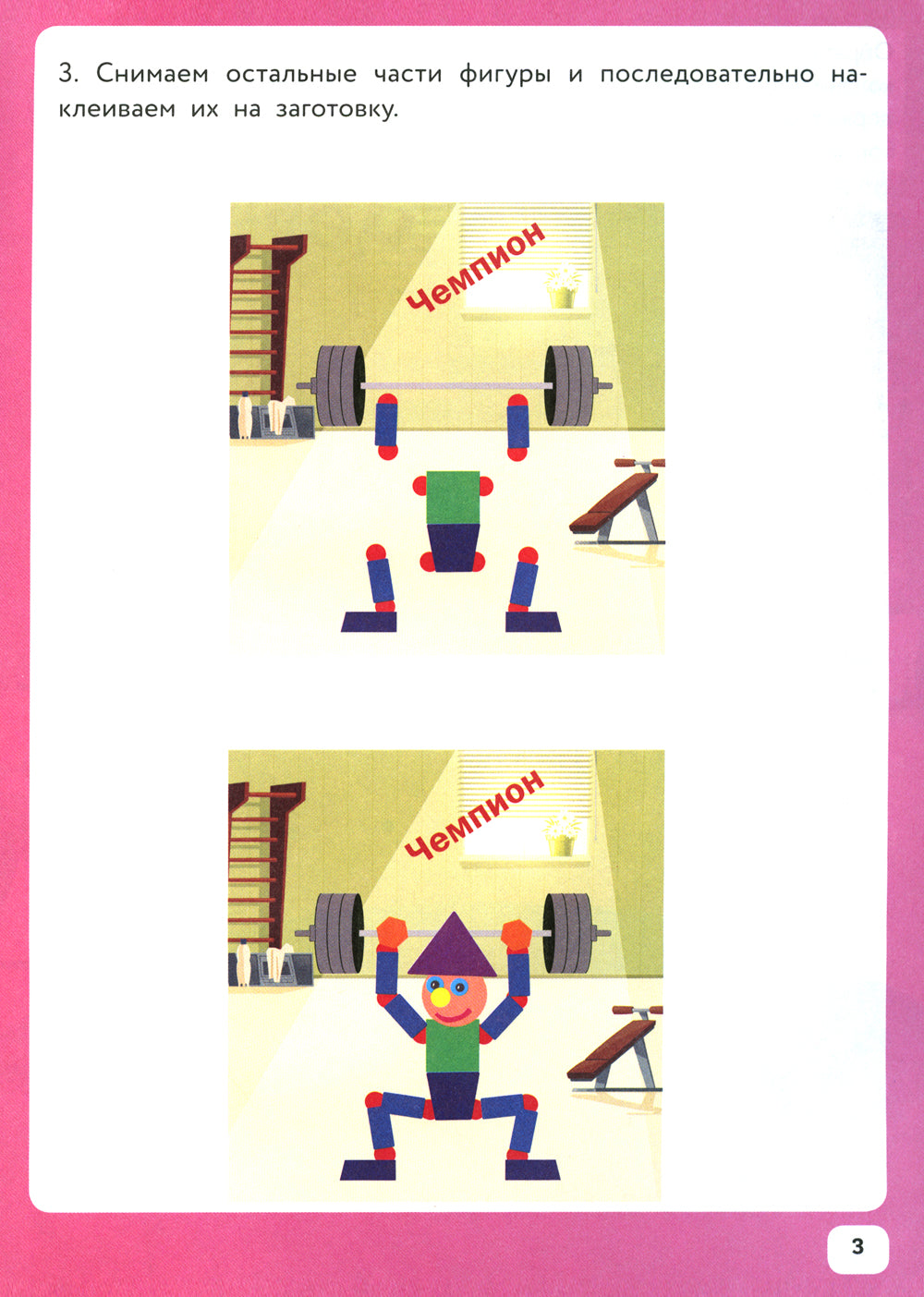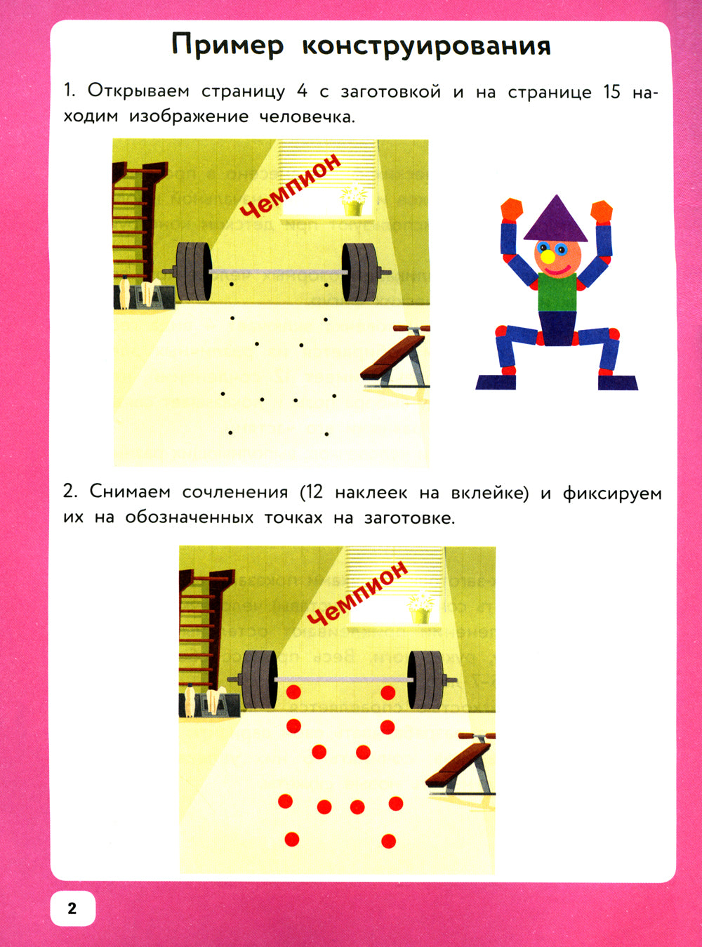 Изучение геометрических фигур внесено в программу подготовки дошкольников и программу начальной школы. Их широко используют при детском проектировании. Мы предлагаем аппликации озорных человечков, собранных из геометрических фигур. Конструкция человечков включает в себя 4 вида геометрических фигур и собирается из различных элементов-наклеек, что дает огромную свободу выбора позы человечка и показывает связи, периодически возникающие между разными его частями. При конструировании человечков, выполняющих разные задачи, у детей создается пространственное представление, чувство пропорций и понимание того, как можно использовать в конструкциях разные формы геометрических фигур.