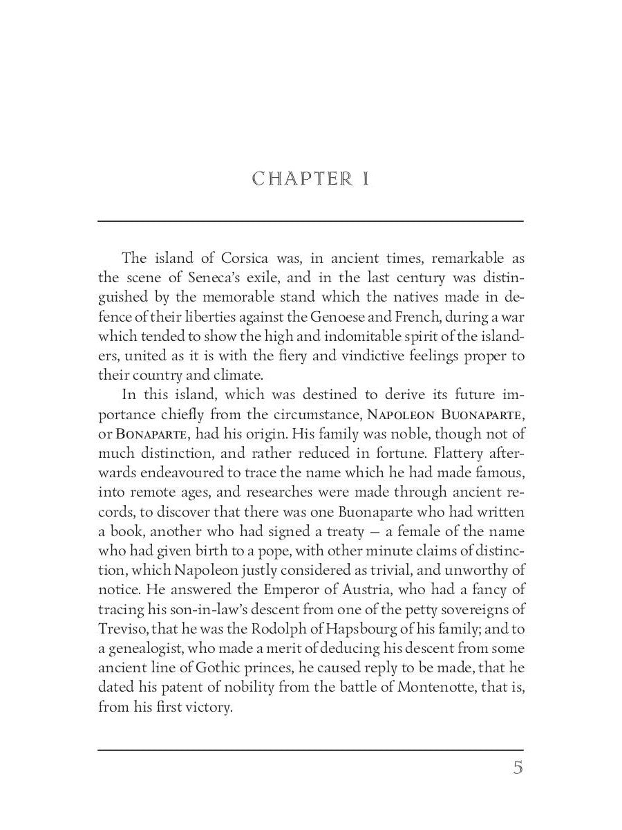 Вальтер Скотт (1771–1832) — шотландский писатель, поэт и драматург. Хотя по профессии он был адвокатом и судебным администратором, Скотт наиболее известен своими выдающимися литературными произведениями и деятельностью в Королевском Хайлендском обществе. Как следует из названия, «Жизнь Наполеона» — монументальный биографический труд, посвящённый изучению Франции в эпоху наполеоновских войн. Стремясь передать точную картину событий, сэр Вальтер Скотт посетил битву при Ватерлоо и взял интервью у офицеров, участвовавших в битве. Книга также основана на архивах британского правительства, посвящённых изгнанию Наполеона на острове Святой Елены.